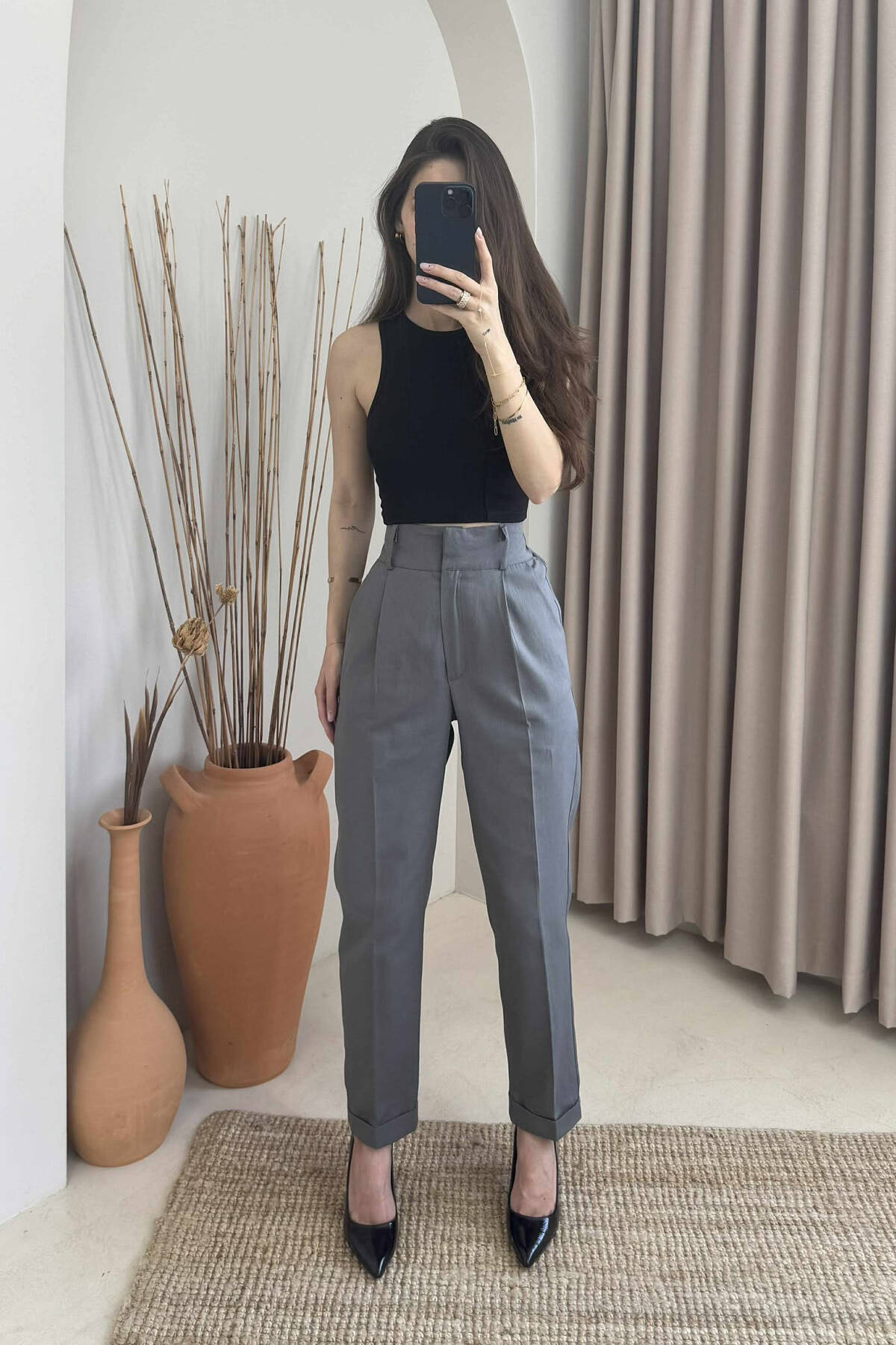 PANTALLONA NJE NGJYRESHE ME DETAJIN E RRIPIT PER FEMRA NE NGJYRE GRI TE ERRET