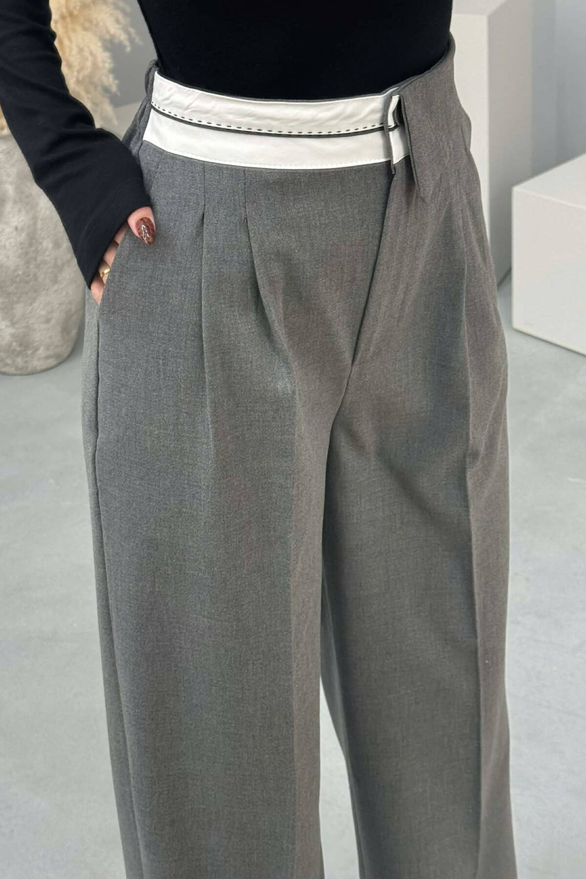 SEMI ELASTIC WIDE LEG WOMEN TROUSERS GREY/GRI
