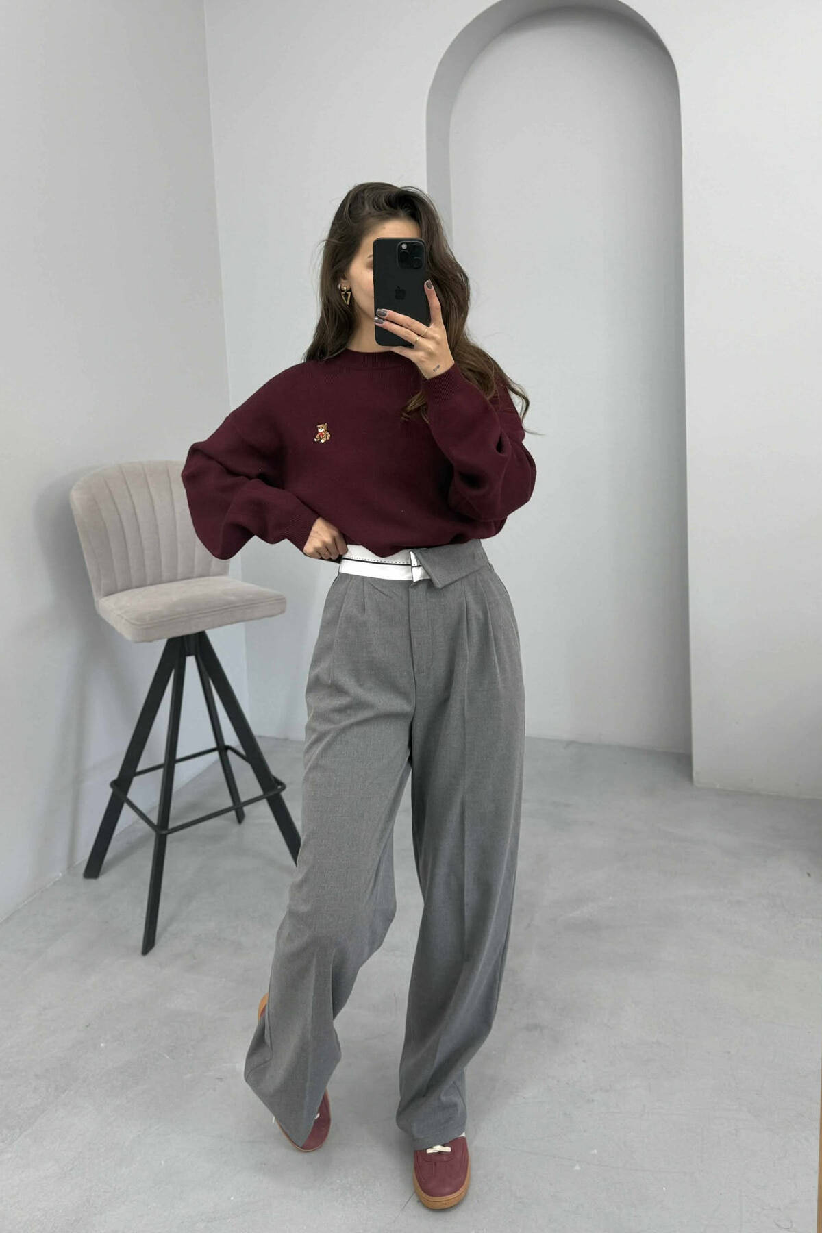 SIMPLE ONE COLOR WOMEN TROUSERS BURGUNDY/VISHNJE