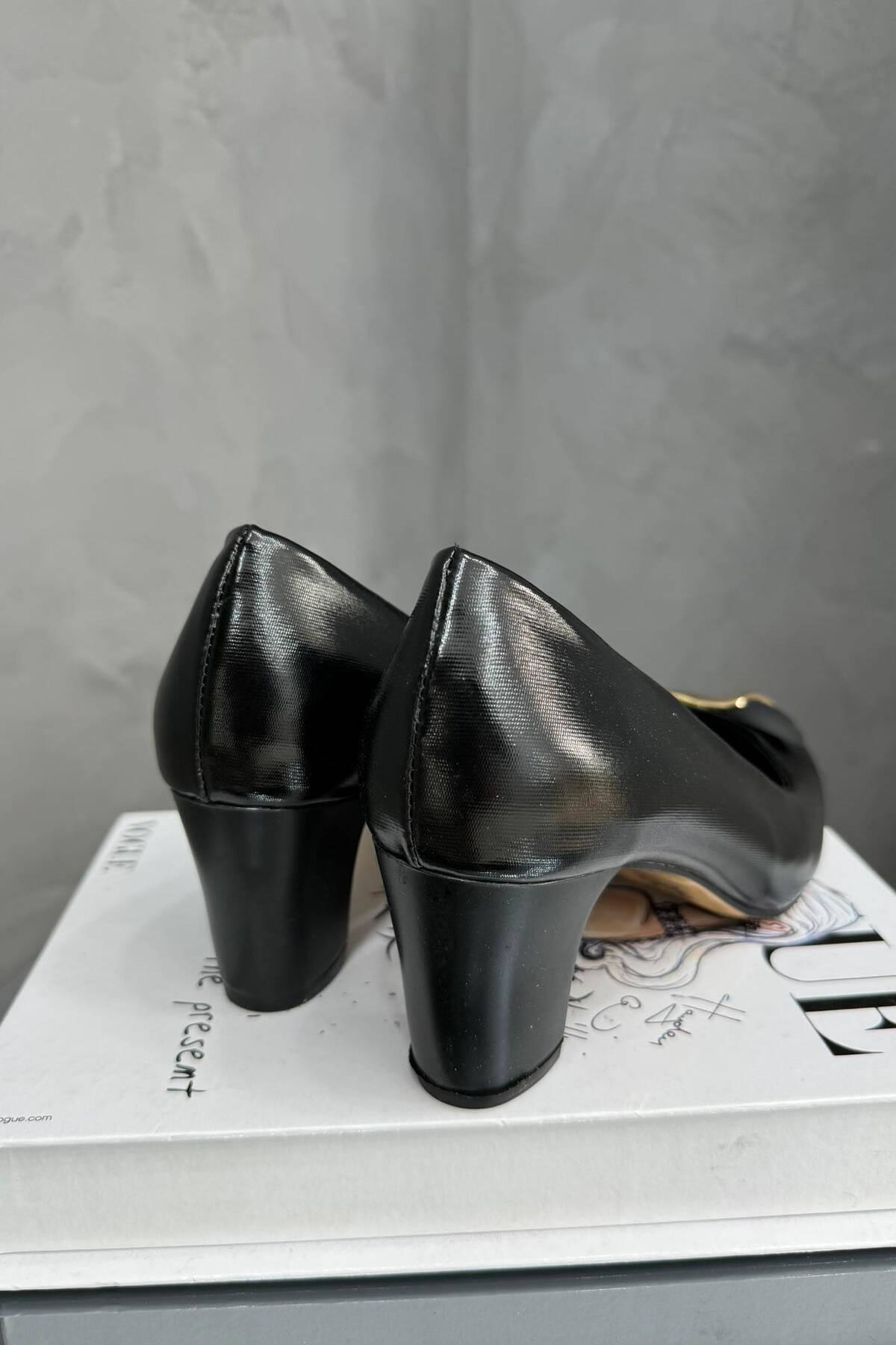 SEMI HEEL GOLD DETAIL WOMAN SHOES GLOSSY BLACK-ZEZE SHKELQIM