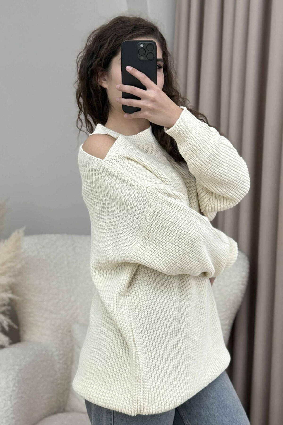 SEMI NECK ONE COLOR WOMEN SWEATER CREAM/KREM