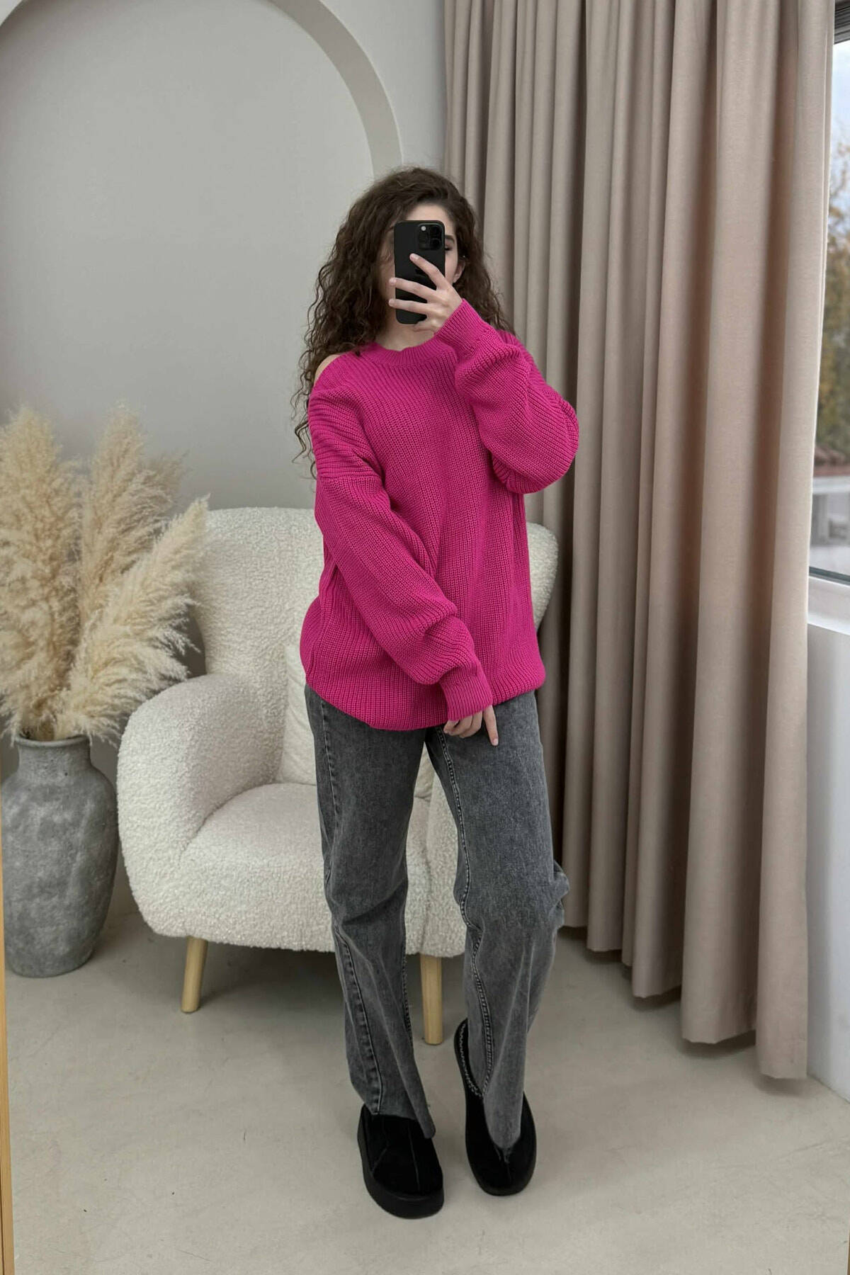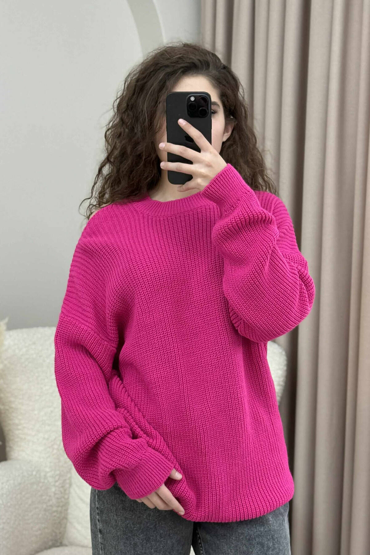 SEMI NECK ONE COLOR WOMEN SWEATER FUCHSIA/CIKLAMI