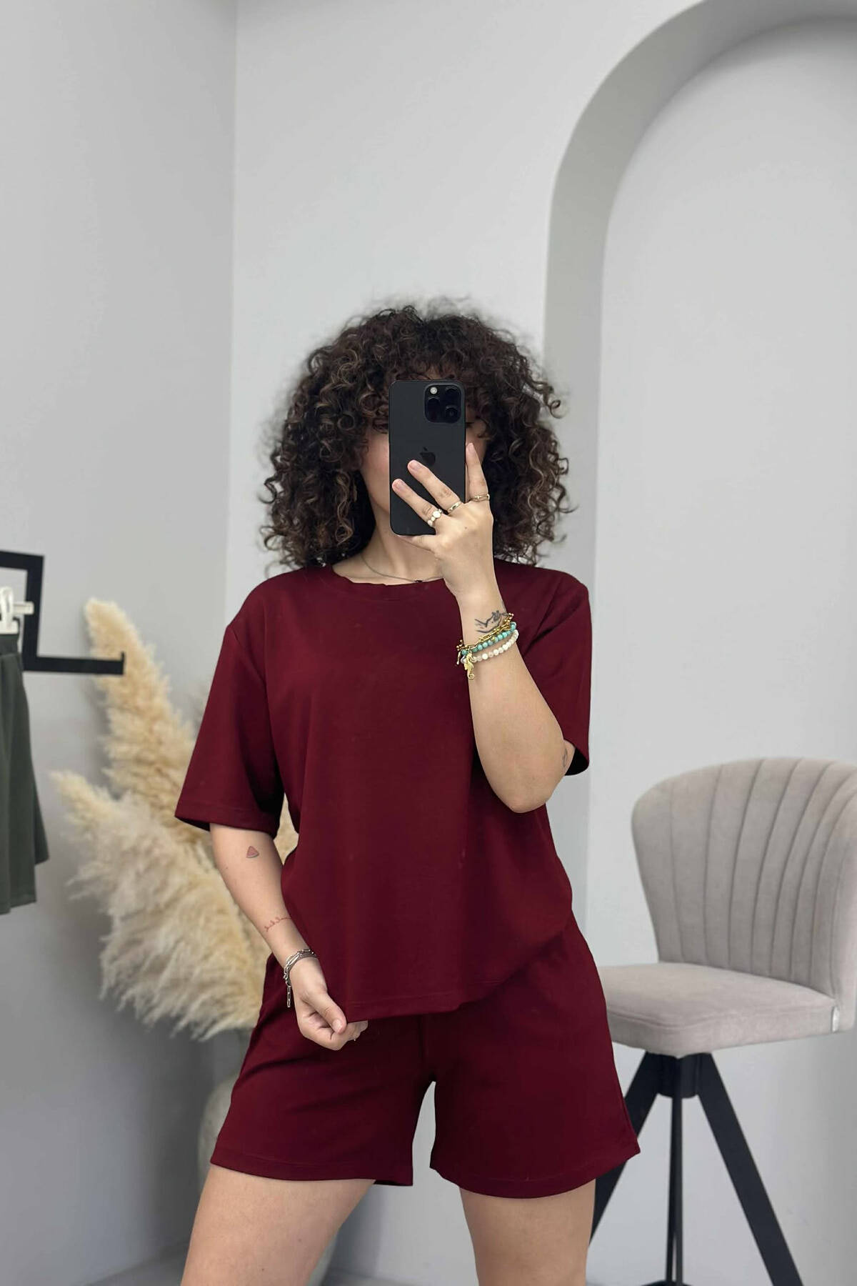 SET I THJESHTË T-SHIRT+PANTALLONA TË SHKURTRA PËR FEMRA NË NGJYRËN VISHNJË
