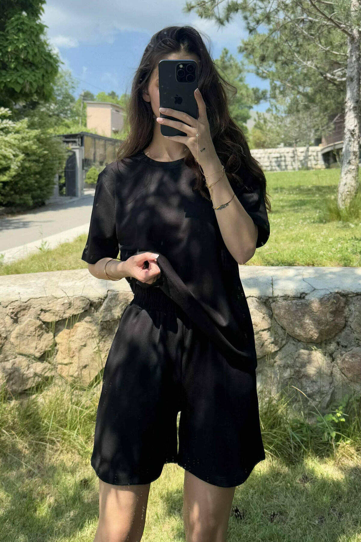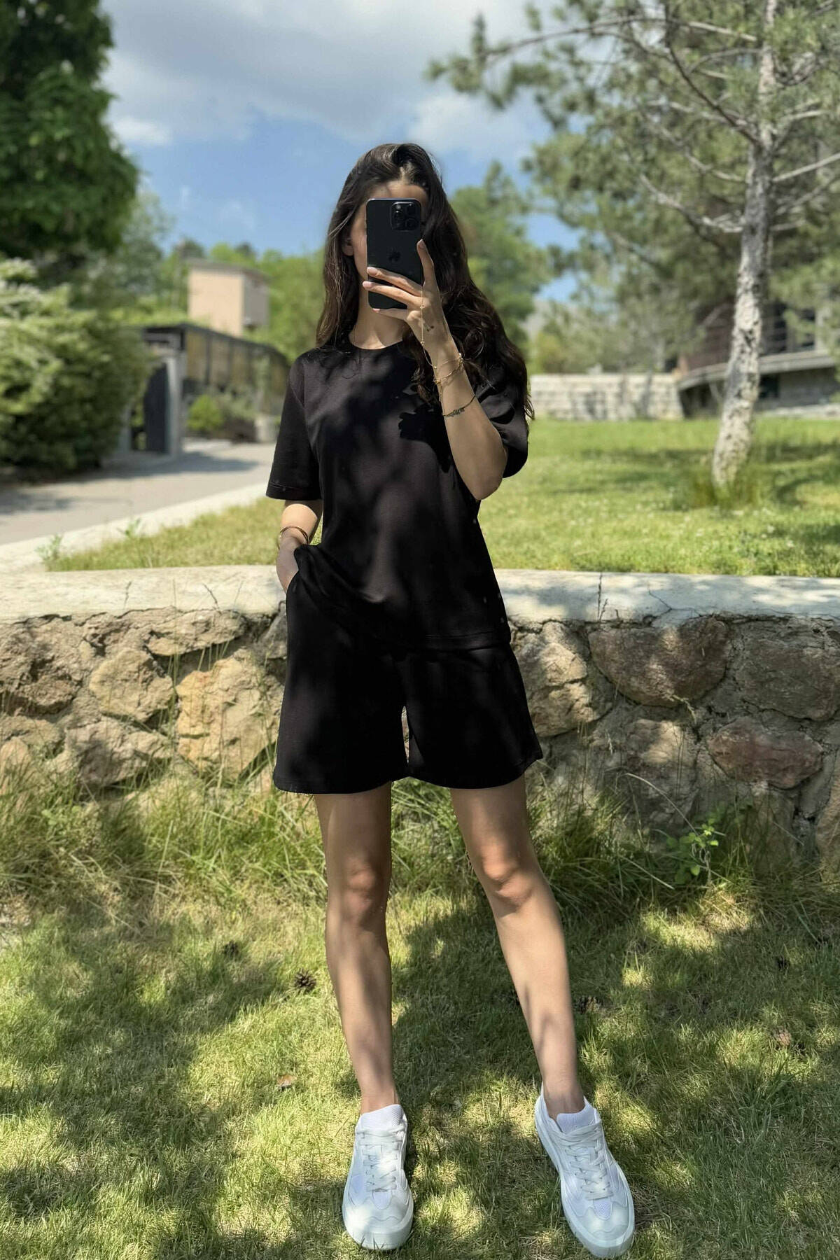 SET I THJESHTË T-SHIRT+PANTALLONA TË SHKURTRA PËR FEMRA NË NGJYRËN E ZEZË