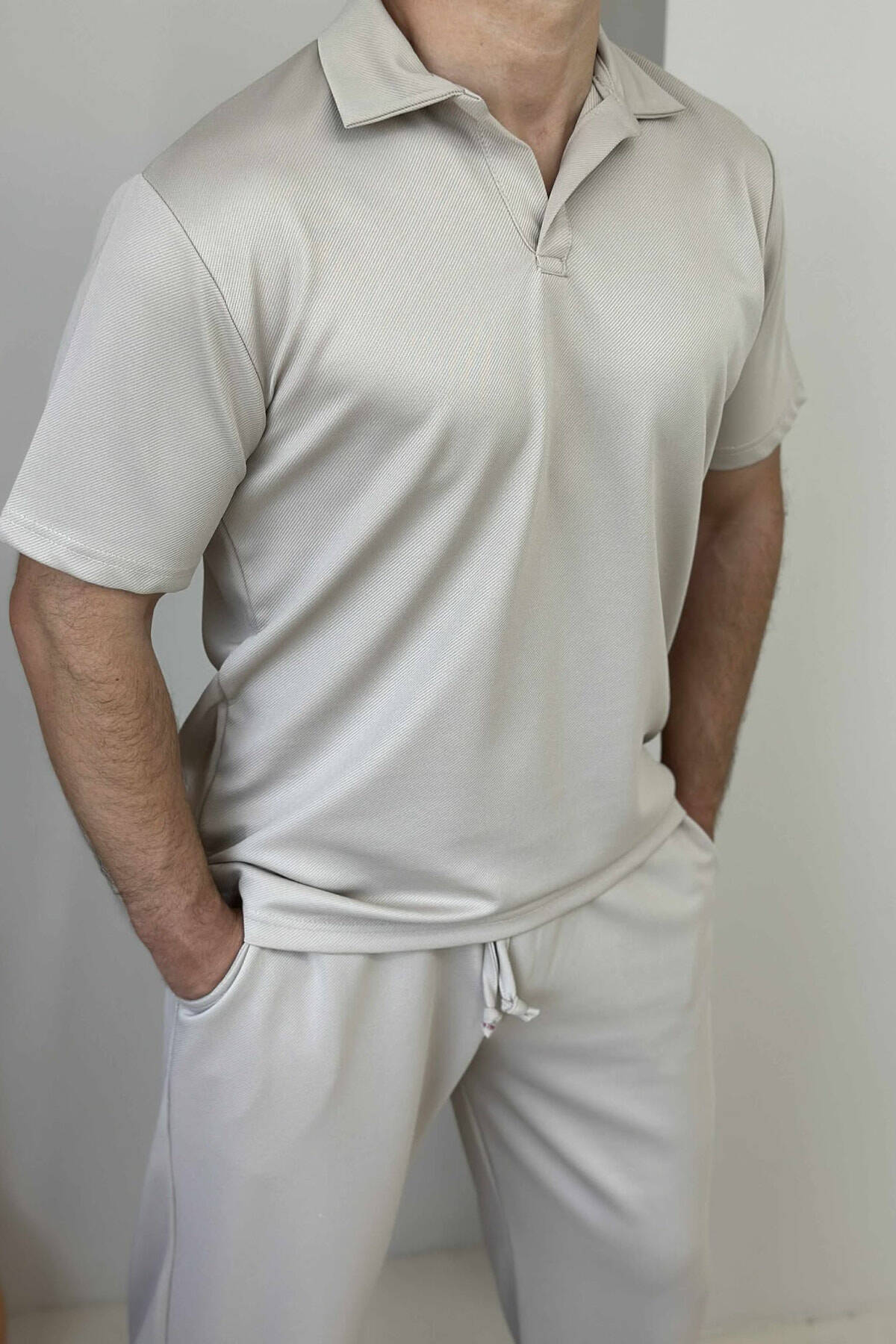 SET I THJESHTË T-SHIRT+TUTA PËR MESHKUJ NË NGJYRËN E BEZHË