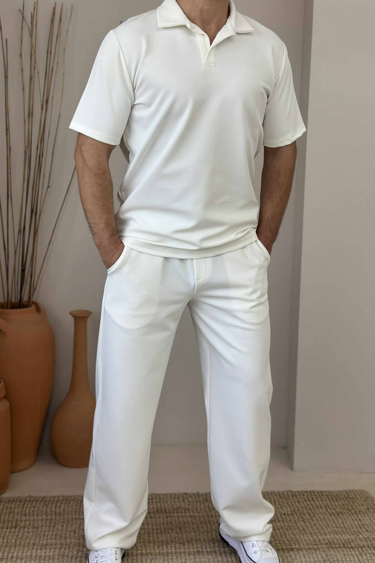 SET I THJESHTË T-SHIRT+TUTA PËR MESHKUJ NË NGJYRËN E BARDHË