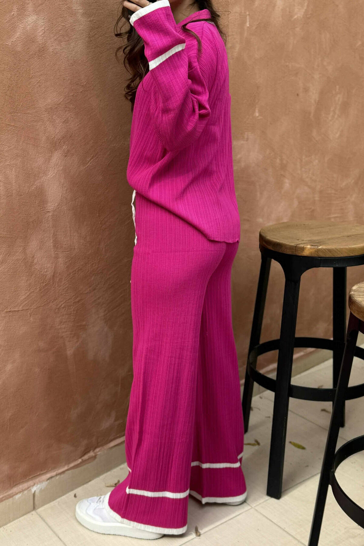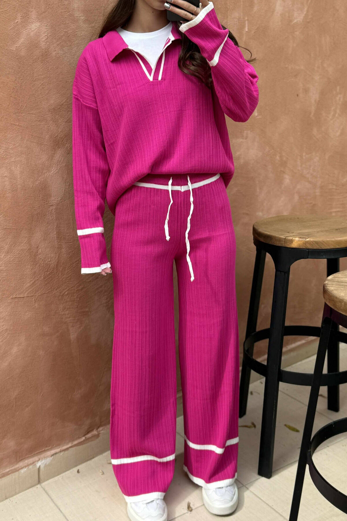 SET I THURRRUR NJË NGJYRËSH TRIKO ME JAKË POLO+PANTALLONA PËR FEMRA NË NGJYRË CIKLAMI
