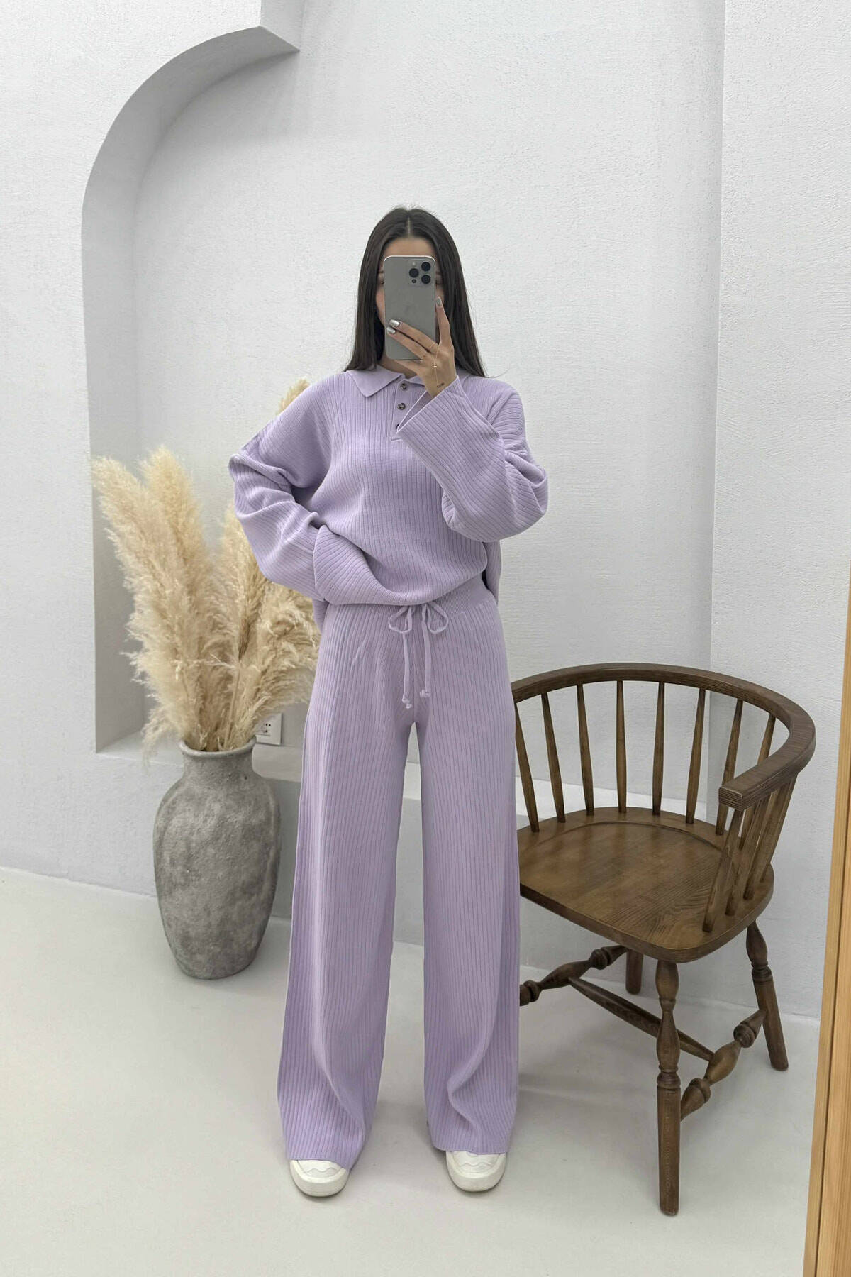 SET I THURRUR NJË NGJYRËSH TRIKO ME JAKË POLO+PANTALLONA PËR FEMRA NË NGJYRË LEJLA