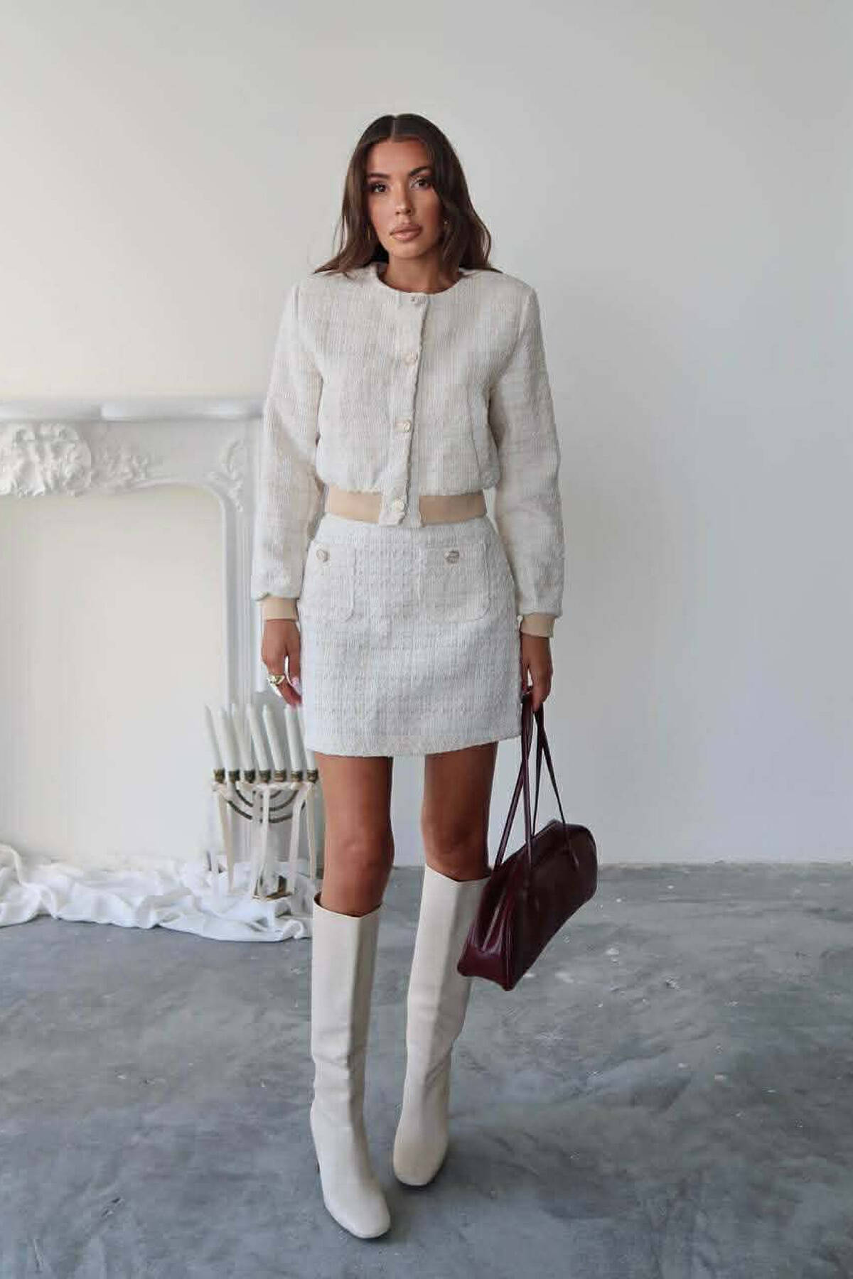 ONE COLOR CROPPED JACKET+SKIRT WOMEN SET LIGHT GREY/GZ
