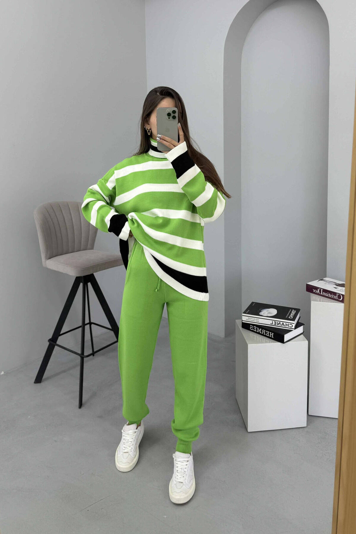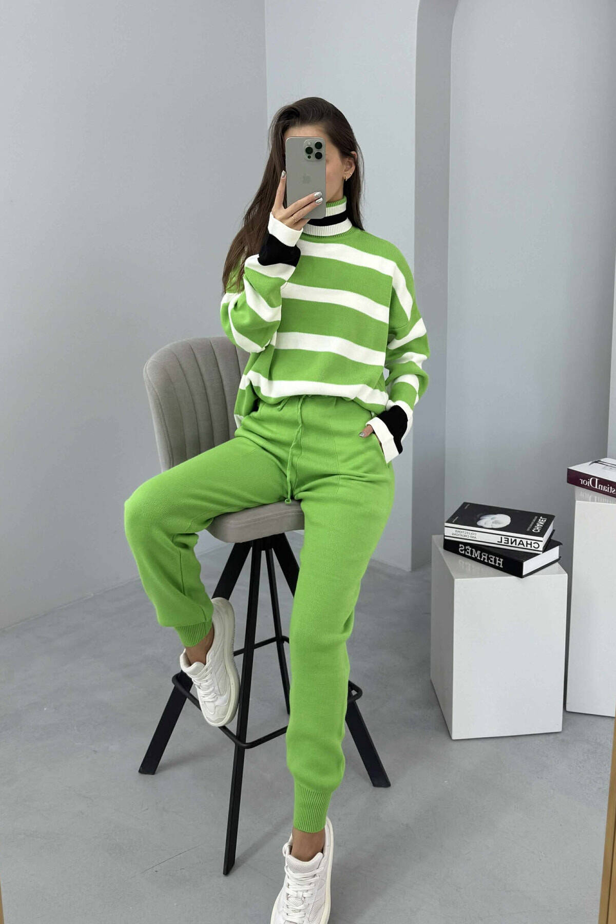 SET I THURRUR TRIKO ME JAKË GOLF DHE VIJA+PANTALLONA PËR FEMRA NË NGJYRË JESHILE TË ZBARDHUR
