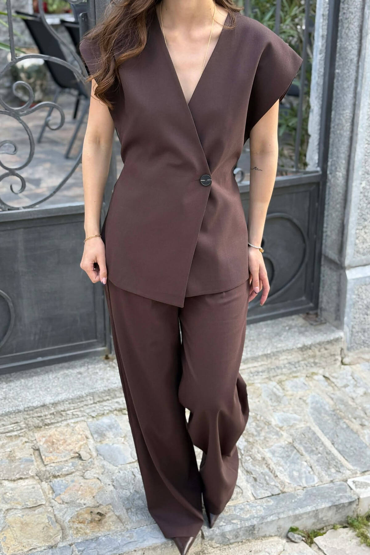 SET JELEK+PANTALLONA PER FEMRA NE NGJYRE KAFE