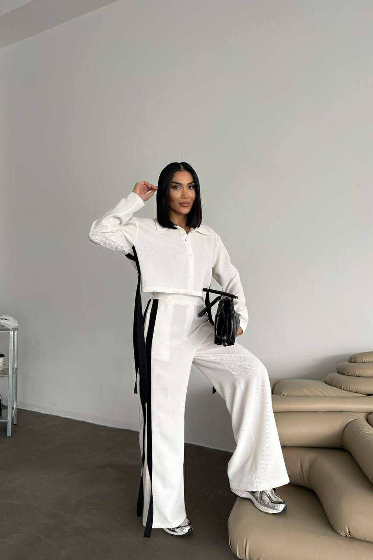 SIDE STARS ZIPPER JACKET + SWEATPANTS WOMAN SET WHITE-E BARDHE