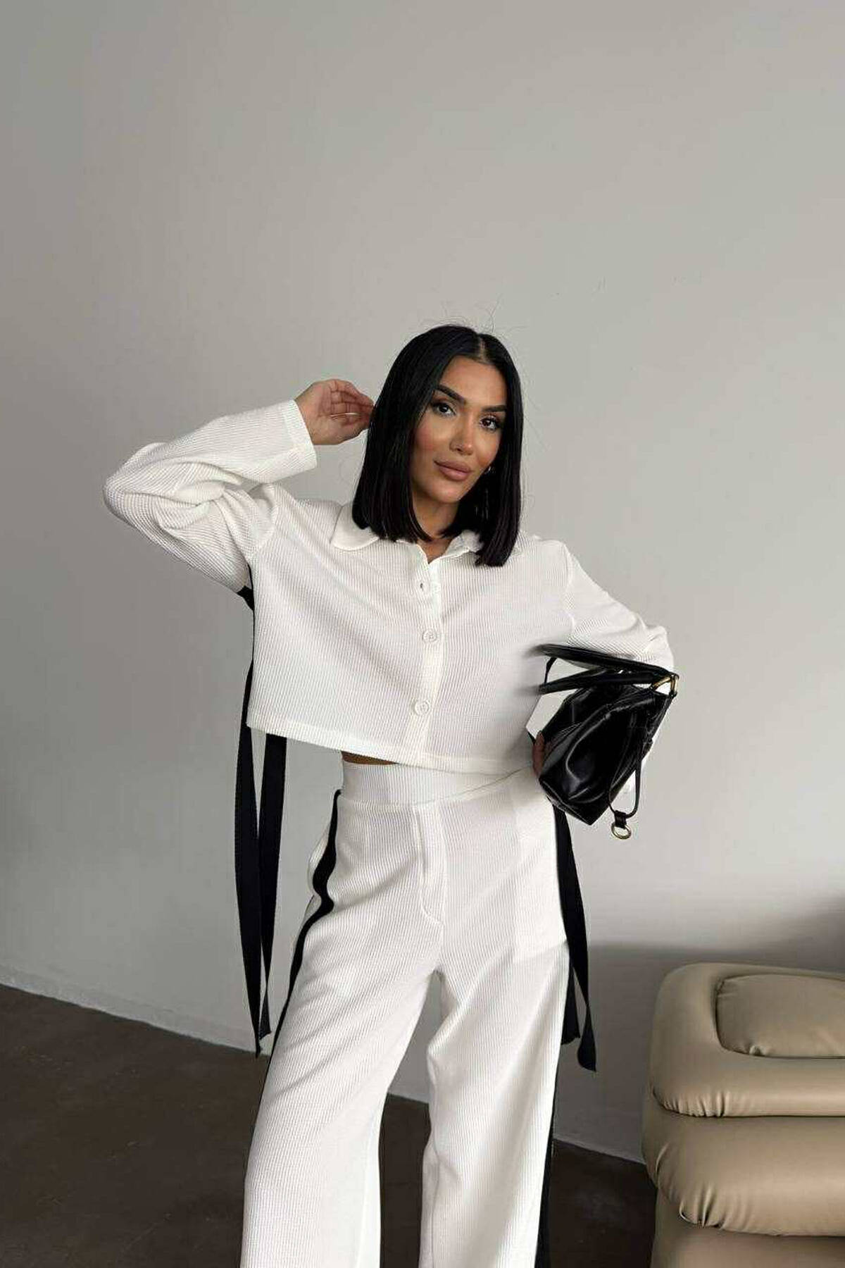 SET KËMISHË E SHKURTËR+PANTALLONA TË THJESHTA PËR FEMRA NË NGJYRË TË BARDHË