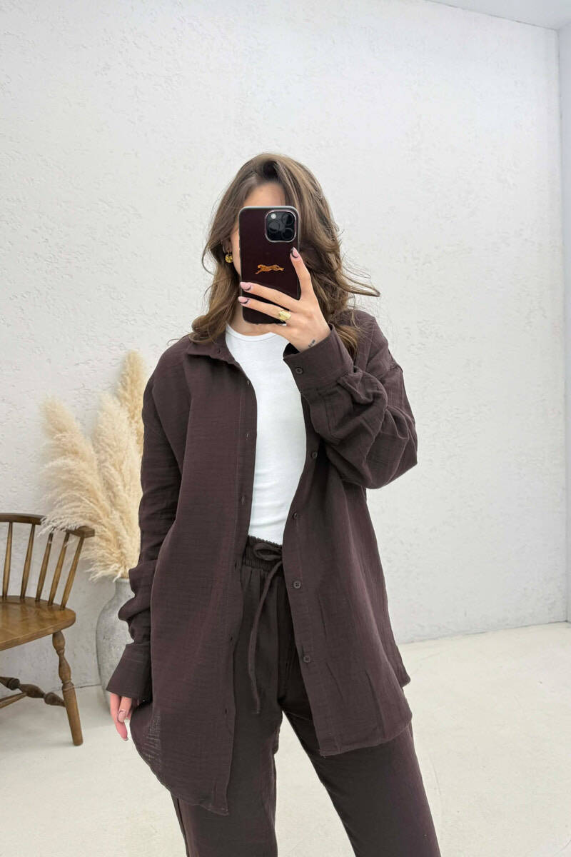 SET KEMISHE ME MENGE TE GJATA + PANTALLONA PER FEMRA NE NGJYRE KAFE TE ERRET
