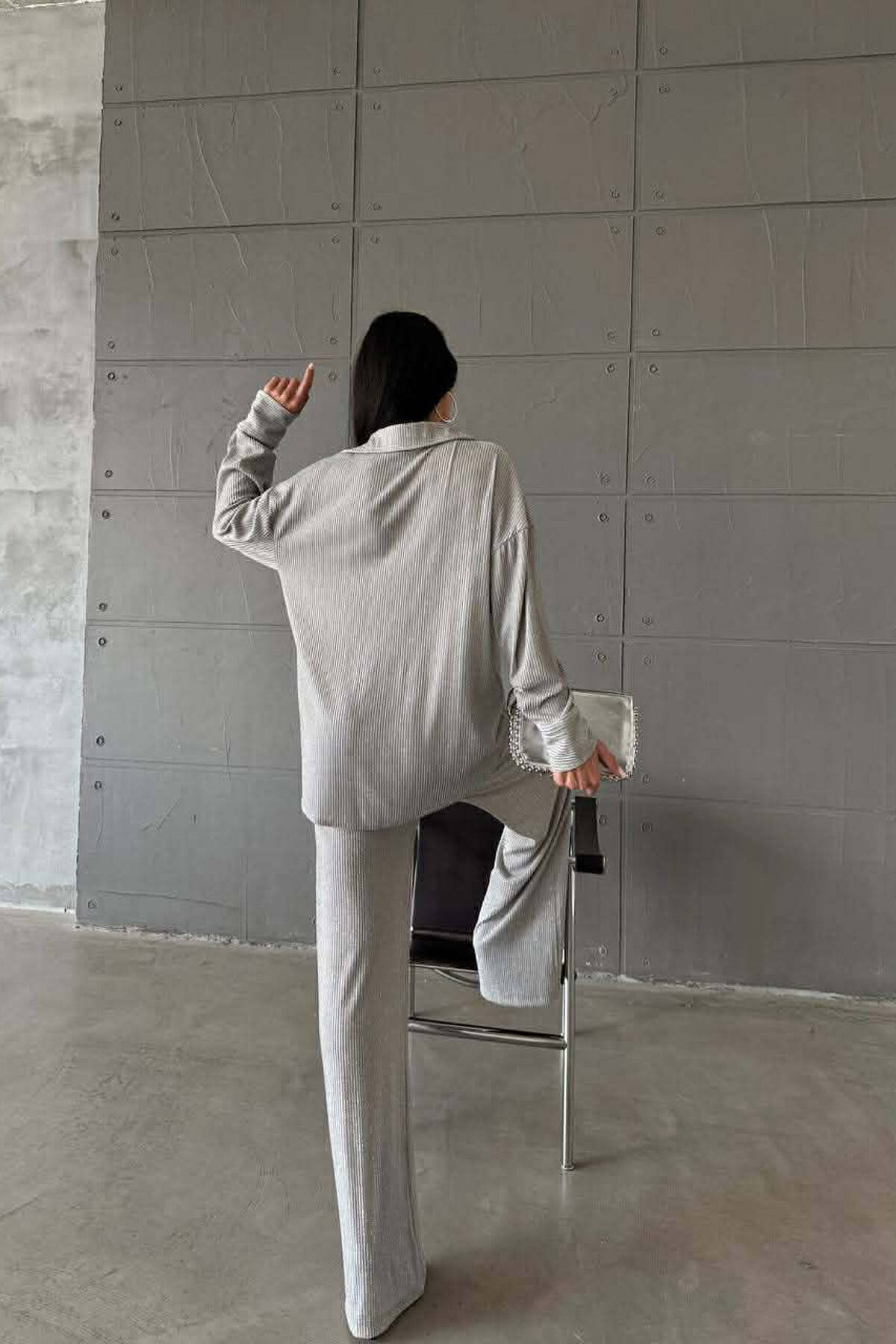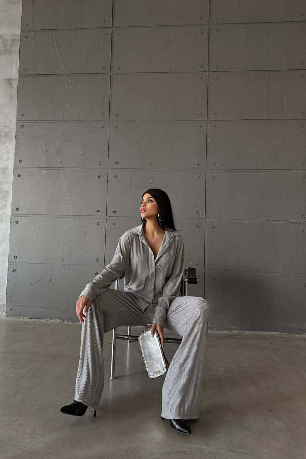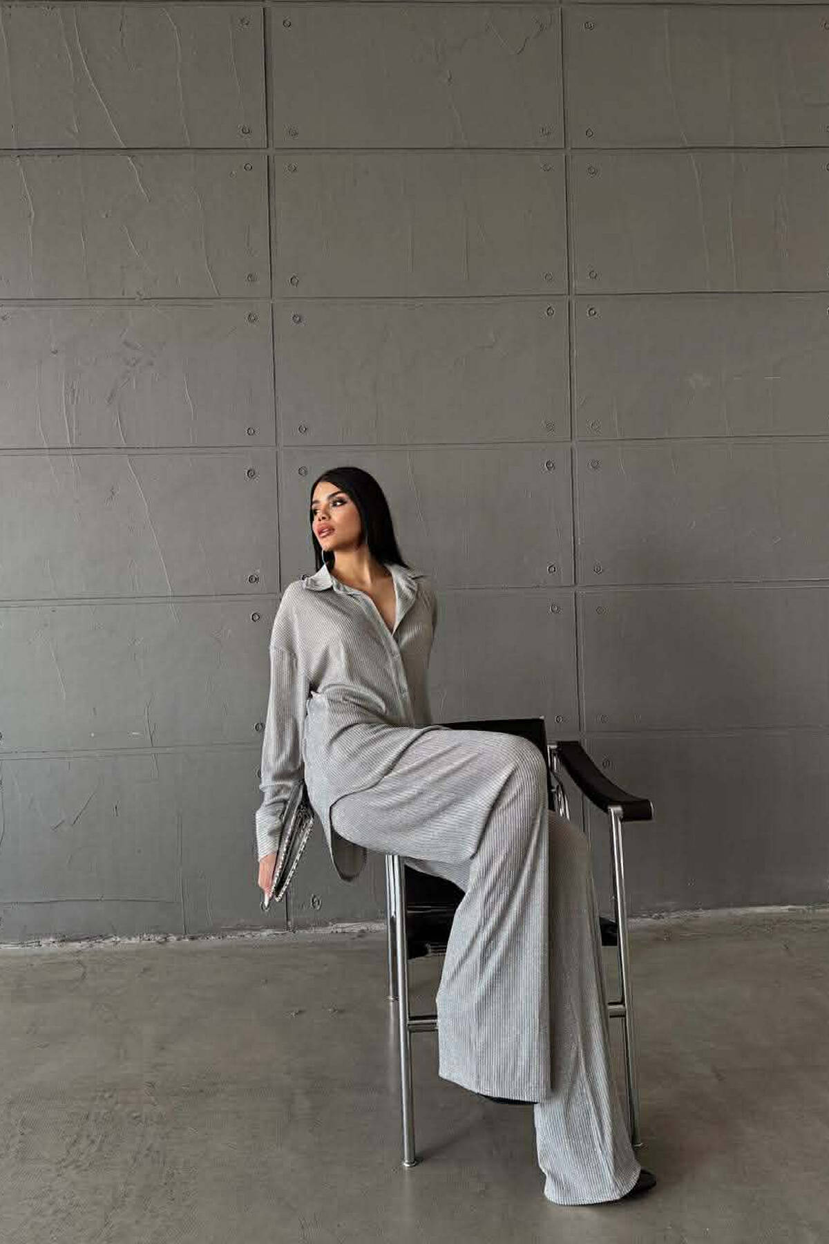 SET KEMISHE + PANTALLONA ME MATERIAL TE NDRITSHEM PER FEMRA NE NGJYRE GRI