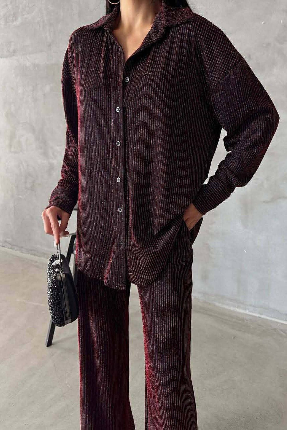 SET KEMISHE + PANTALLONA ME MATERIAL TE NDRITSHEM PER FEMRA NE NGJYRE VISHNJE