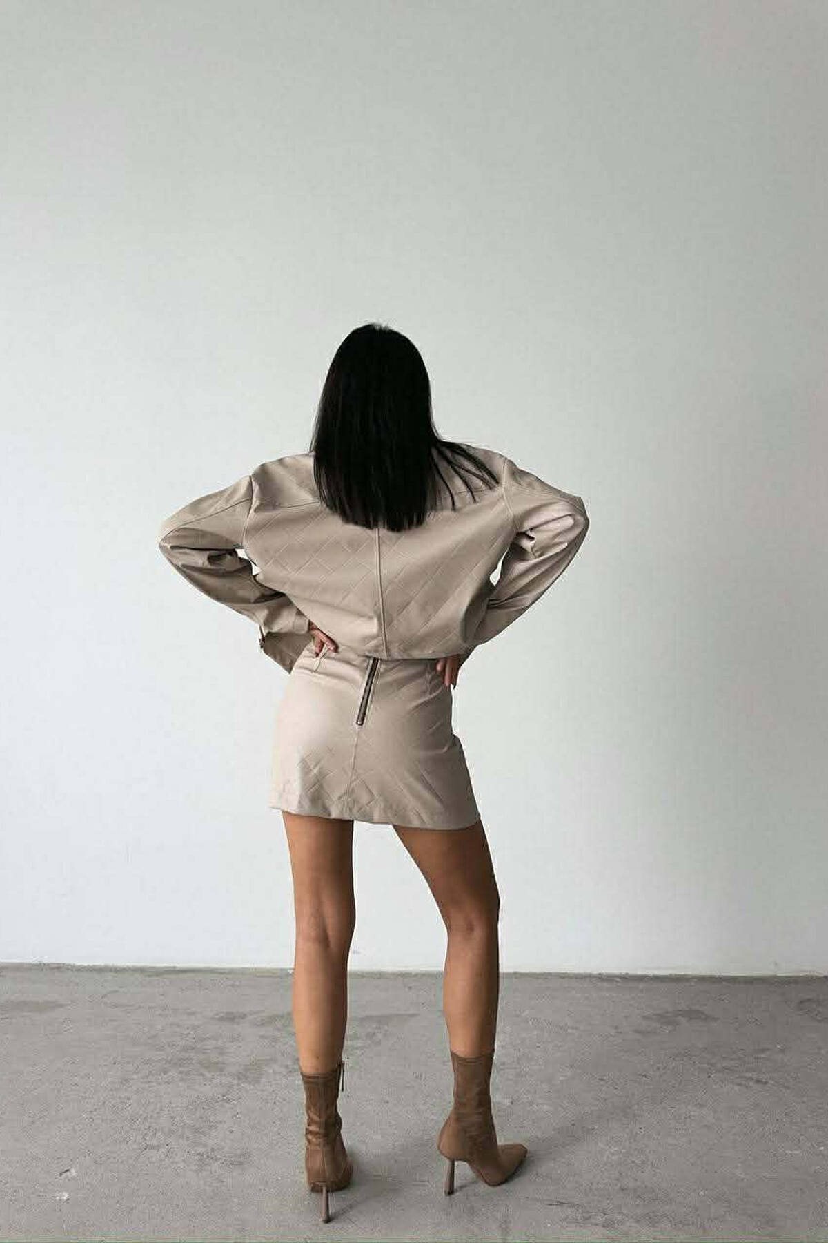 ONE COLOR CROPPED JACKET+SKIRT WOMEN SET LIGHT GREY/GZ
