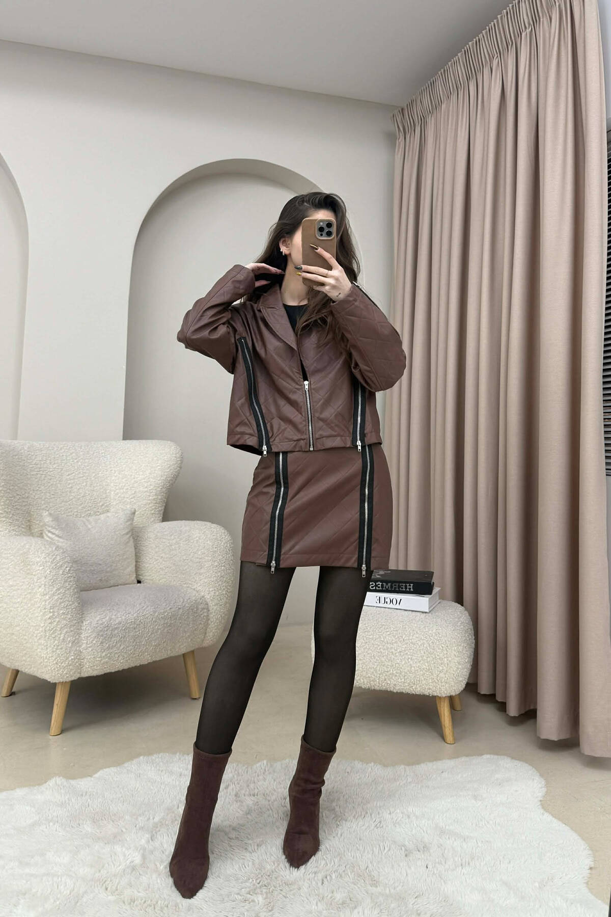 SET NJË NGJYRËSH PËR FEMRA NË NGJYRE KAFE TE ERRET