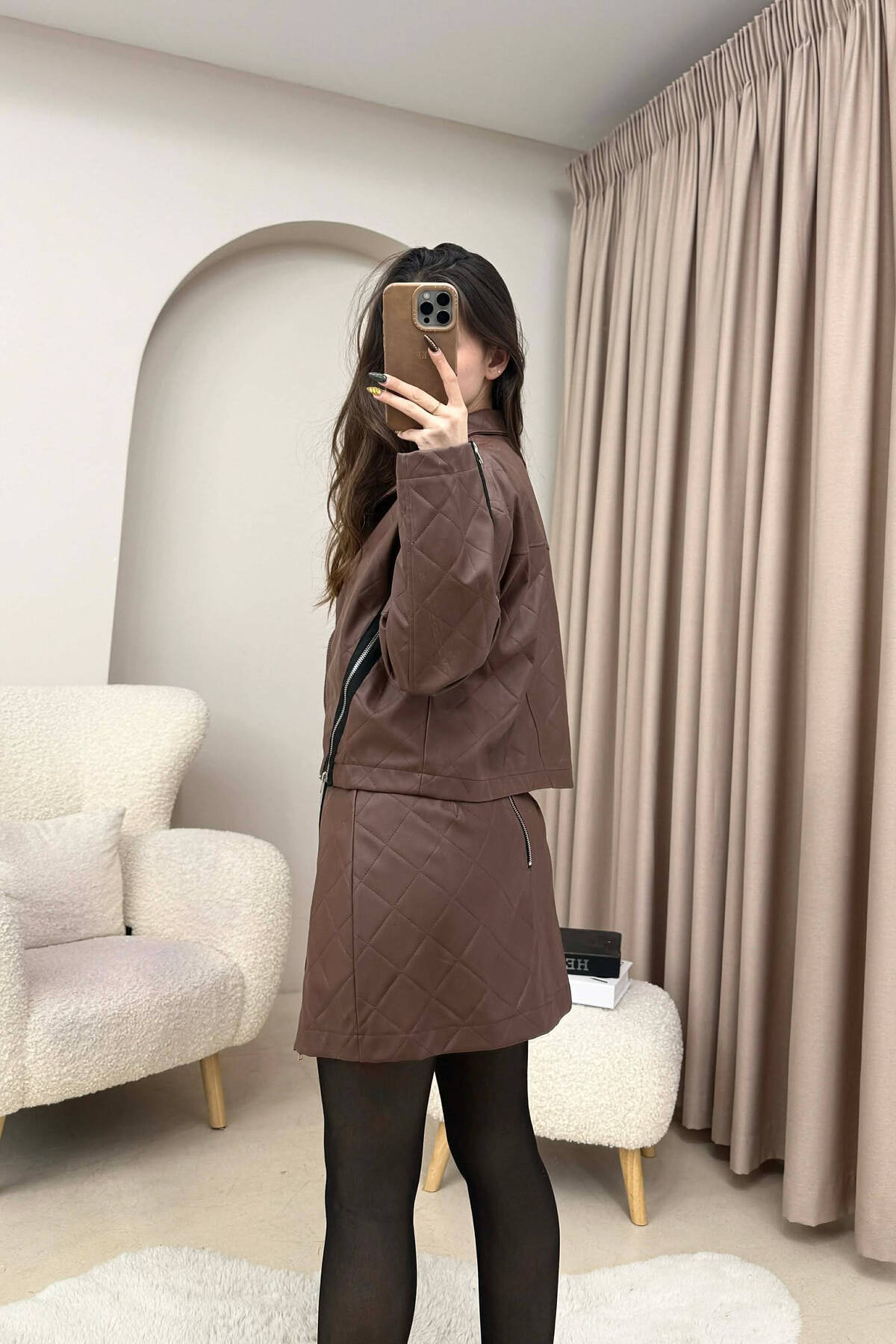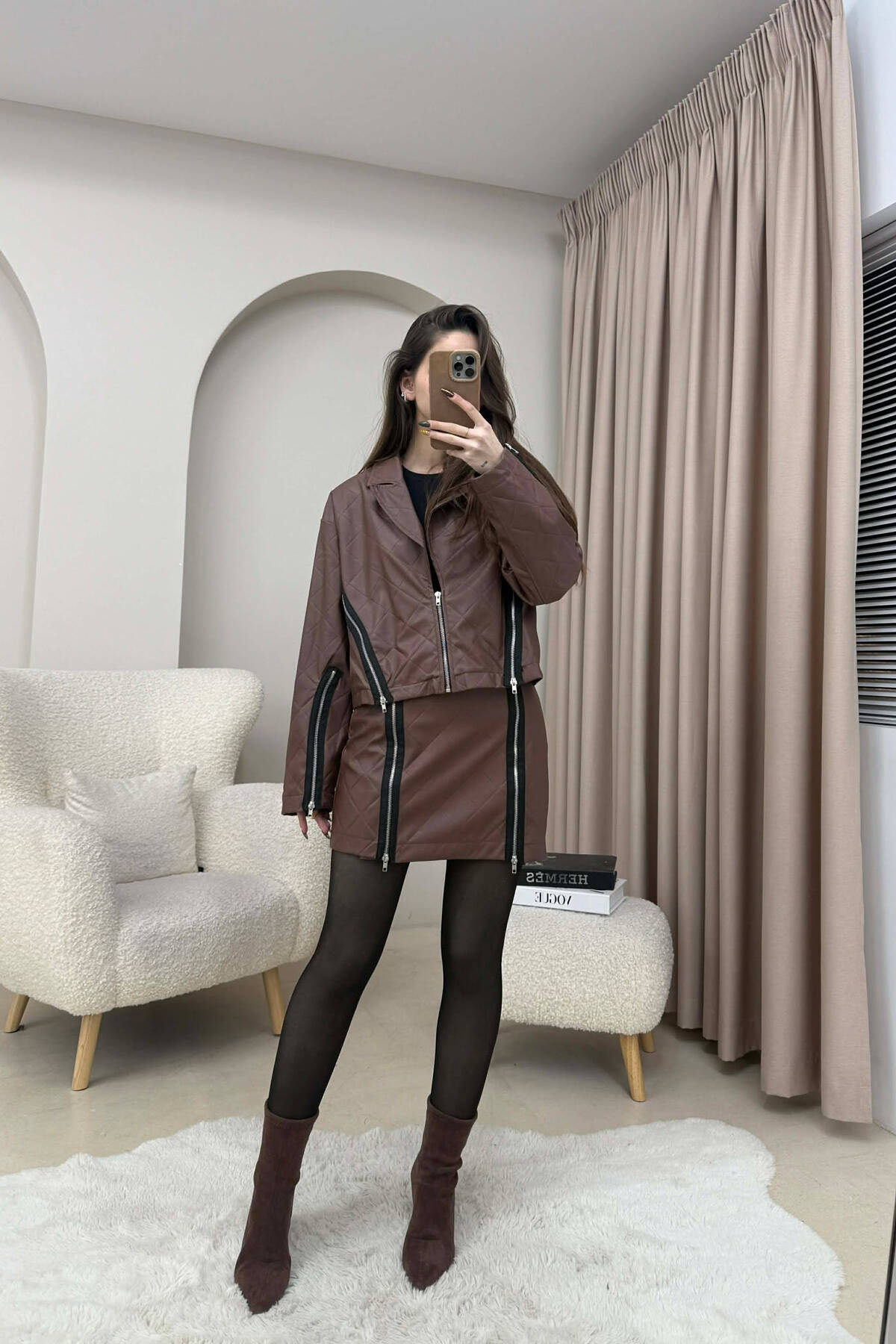 SET LEKURE XHAKETE ME DETAJE ZINXHIRASH + FUND PER FEMRA NE NGJYRE KAFE