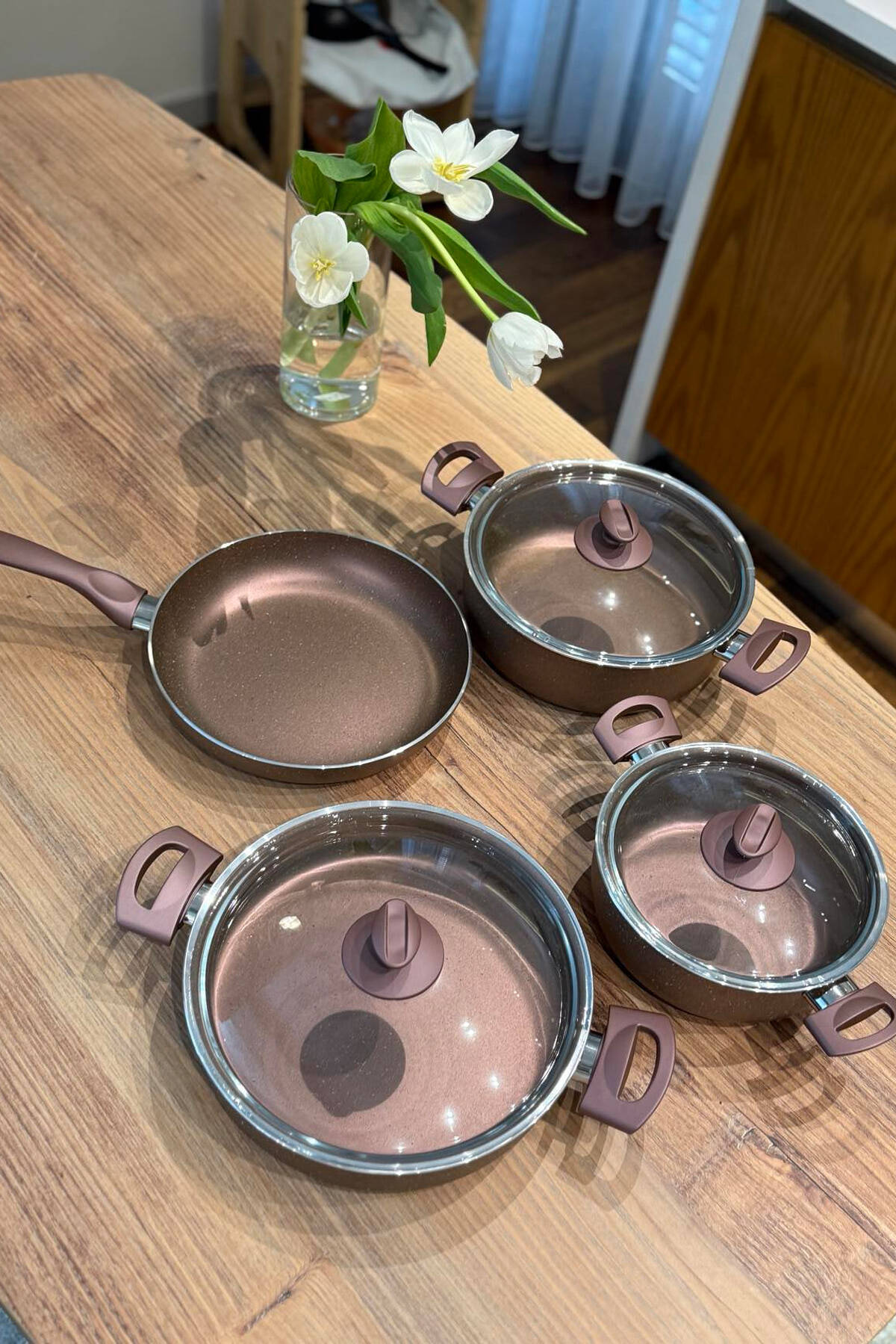 Material graniti cilësor që siguron shpërndarje të njëtrajtshme të nxehtësisë dhe gatim të shëndetshëm falë veshjes së tyre jo-ngjitëse