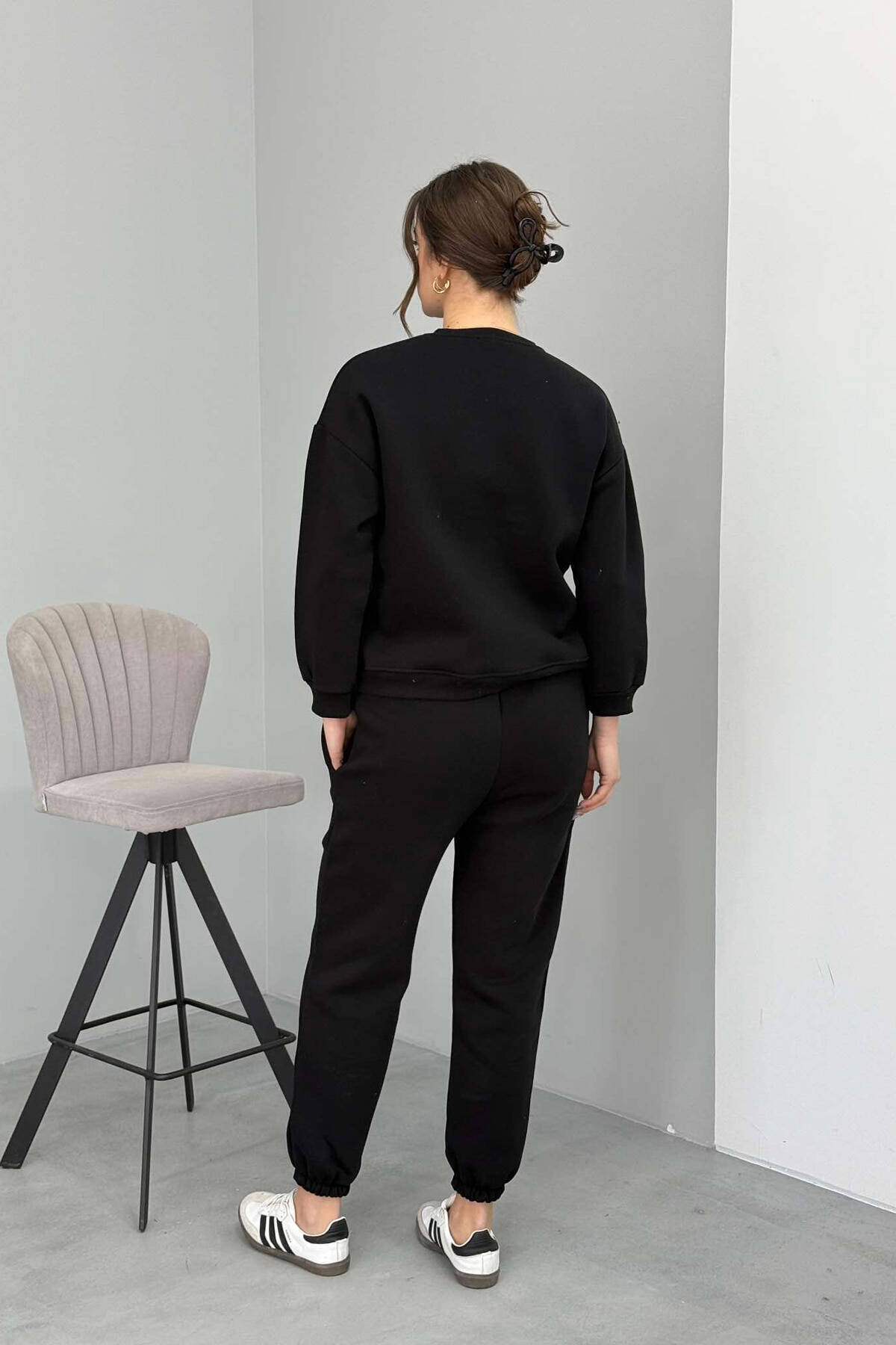 SIDE STARS ZIPPER JACKET + SWEATPANTS WOMAN SET BLACK/ E ZEZE