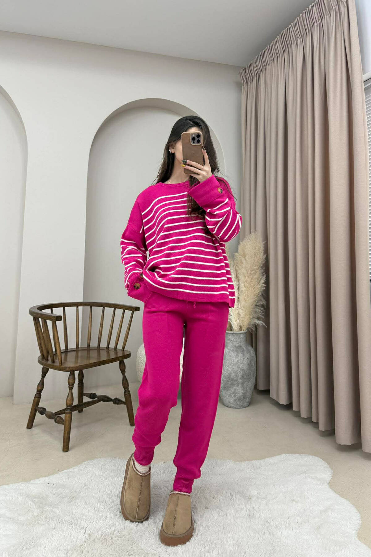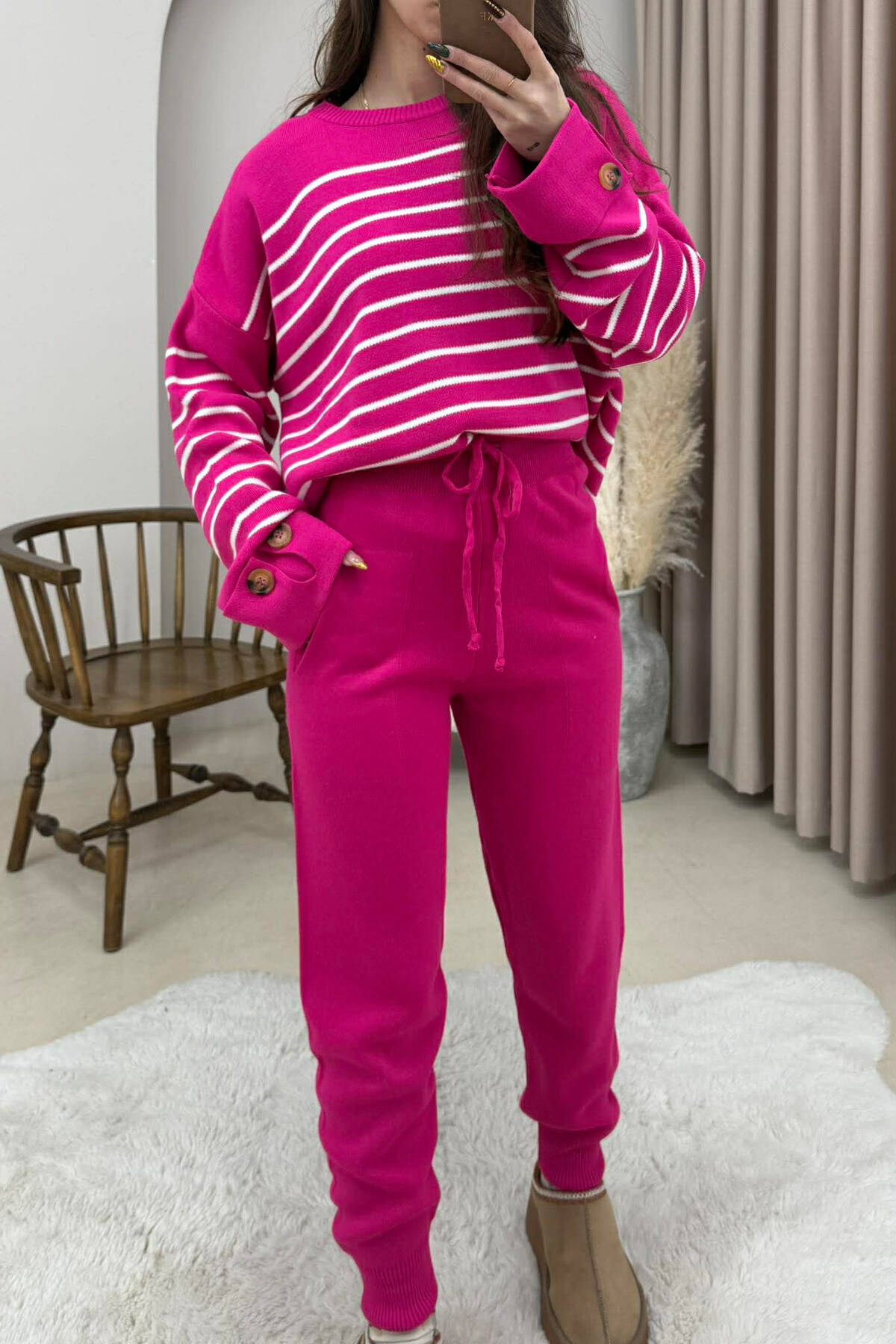 SET ME DIZAJN VIJASH TRIKO ME DETAJE BUTONASH+PANTALLONA PËR FEMRA NË NGJYRË CIKLAMI