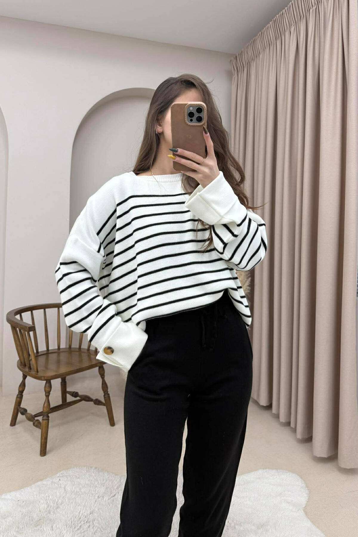 SET ME DIZAJN VIJASH TRIKO ME DETAJE BUTONASH+PANTALLONA PËR FEMRA NË NGJYRË TË BARDHË