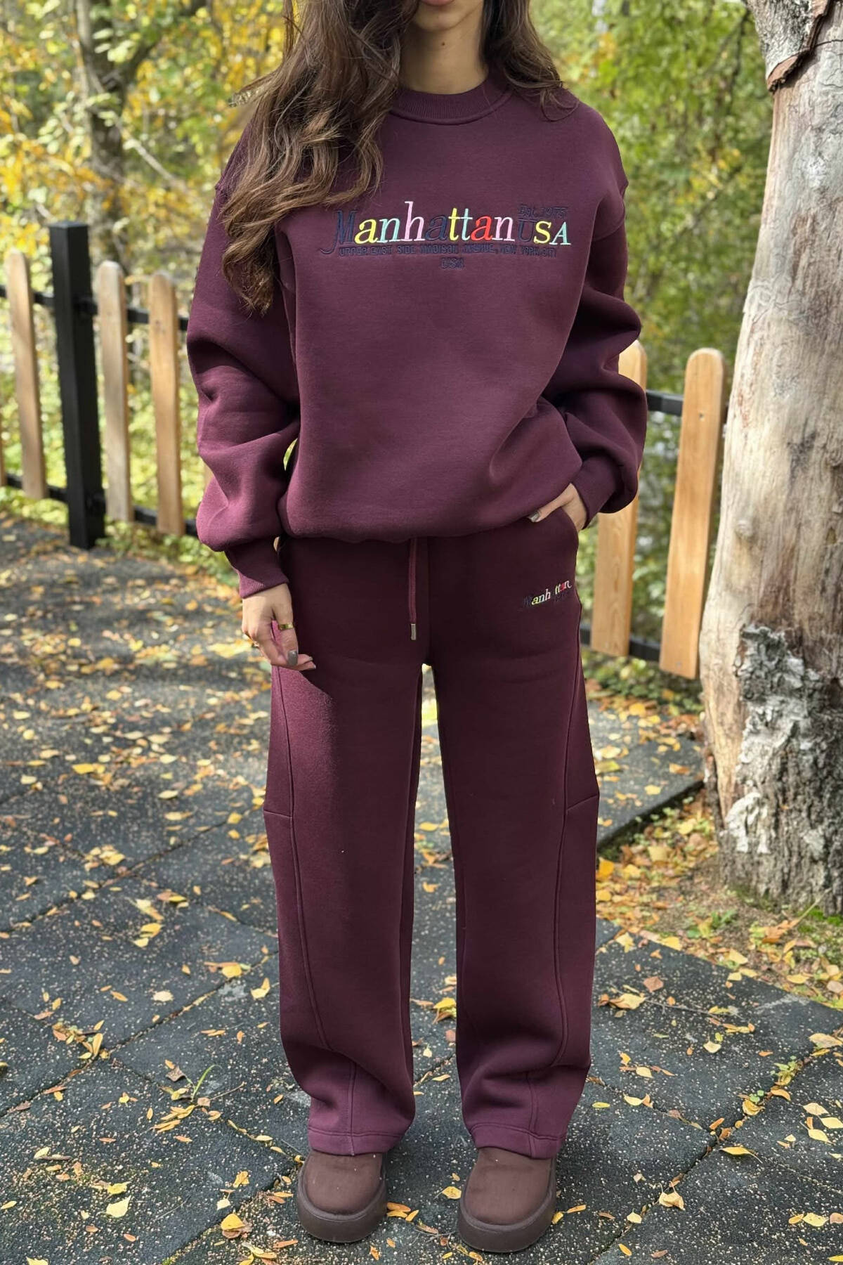 SET ME PUSH BLUZË+TUTA ME SHKRIME PËR FEMRA NË NGJYRË VISHNJË