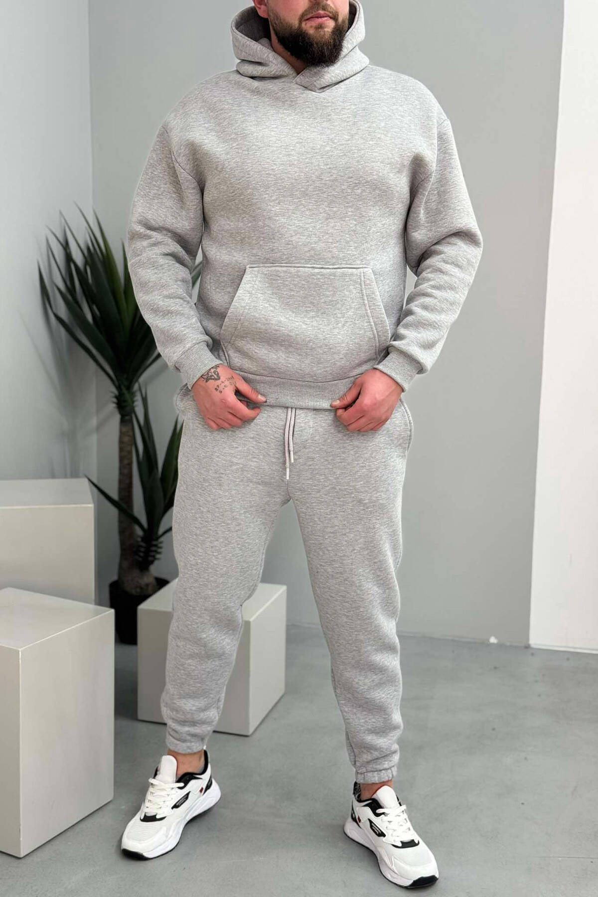 HOODIE+JOGGERS WRITTINGS FLUFFY MEN SET DARK GREY/GEE