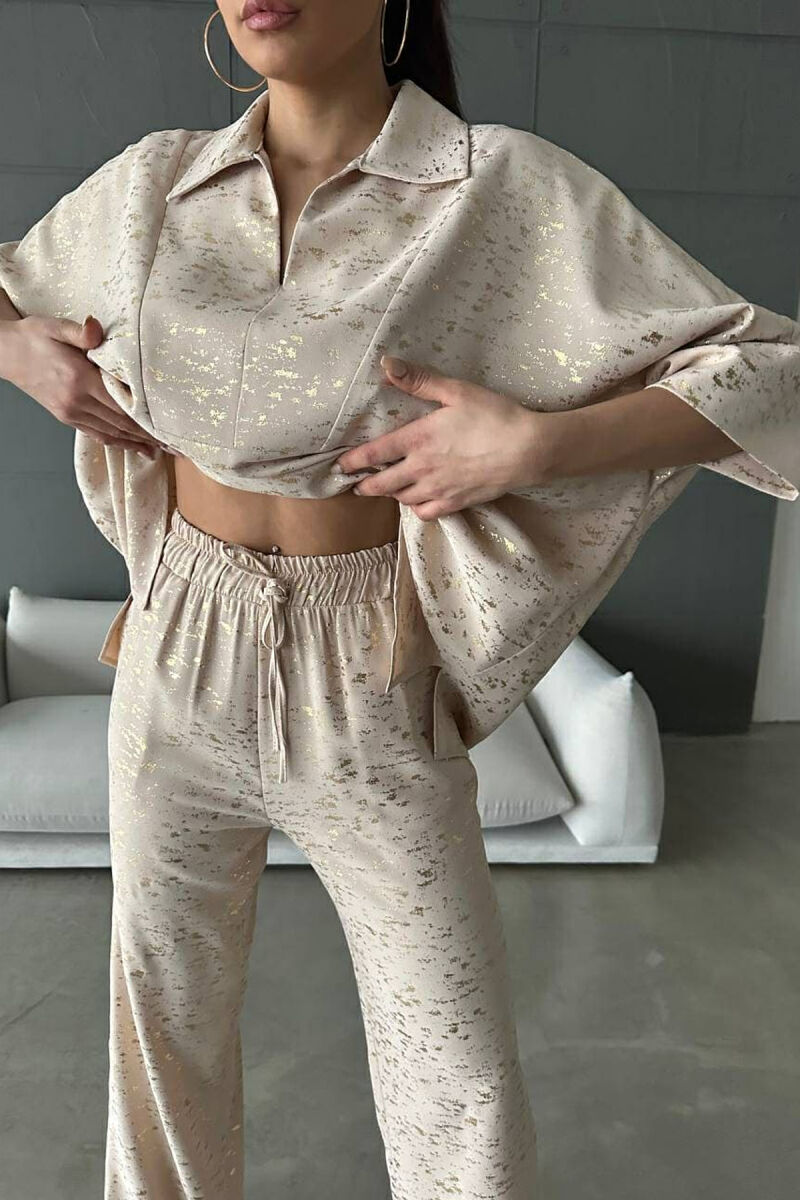 CROPPED JACKET+TANK TOP+TROUSERS 3 PIECE WOMEN SET BEIGE/BEZHE