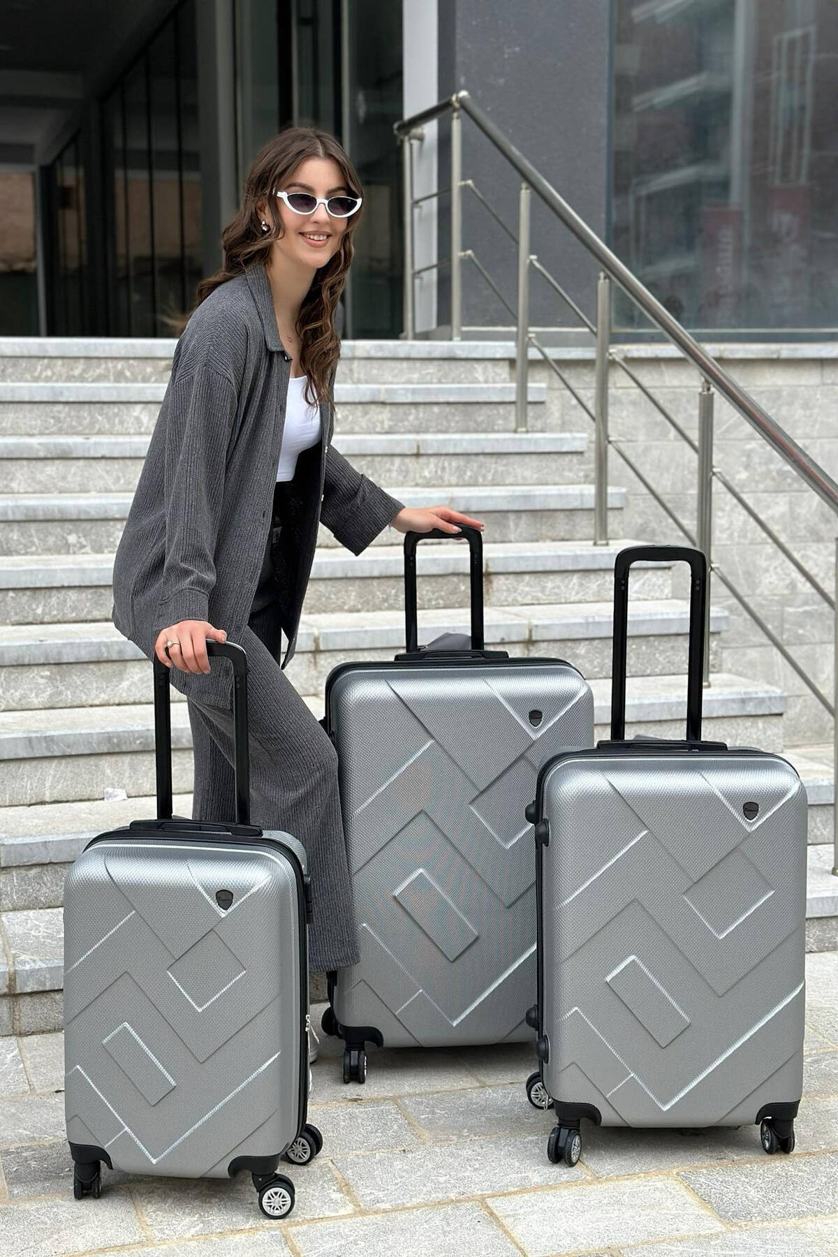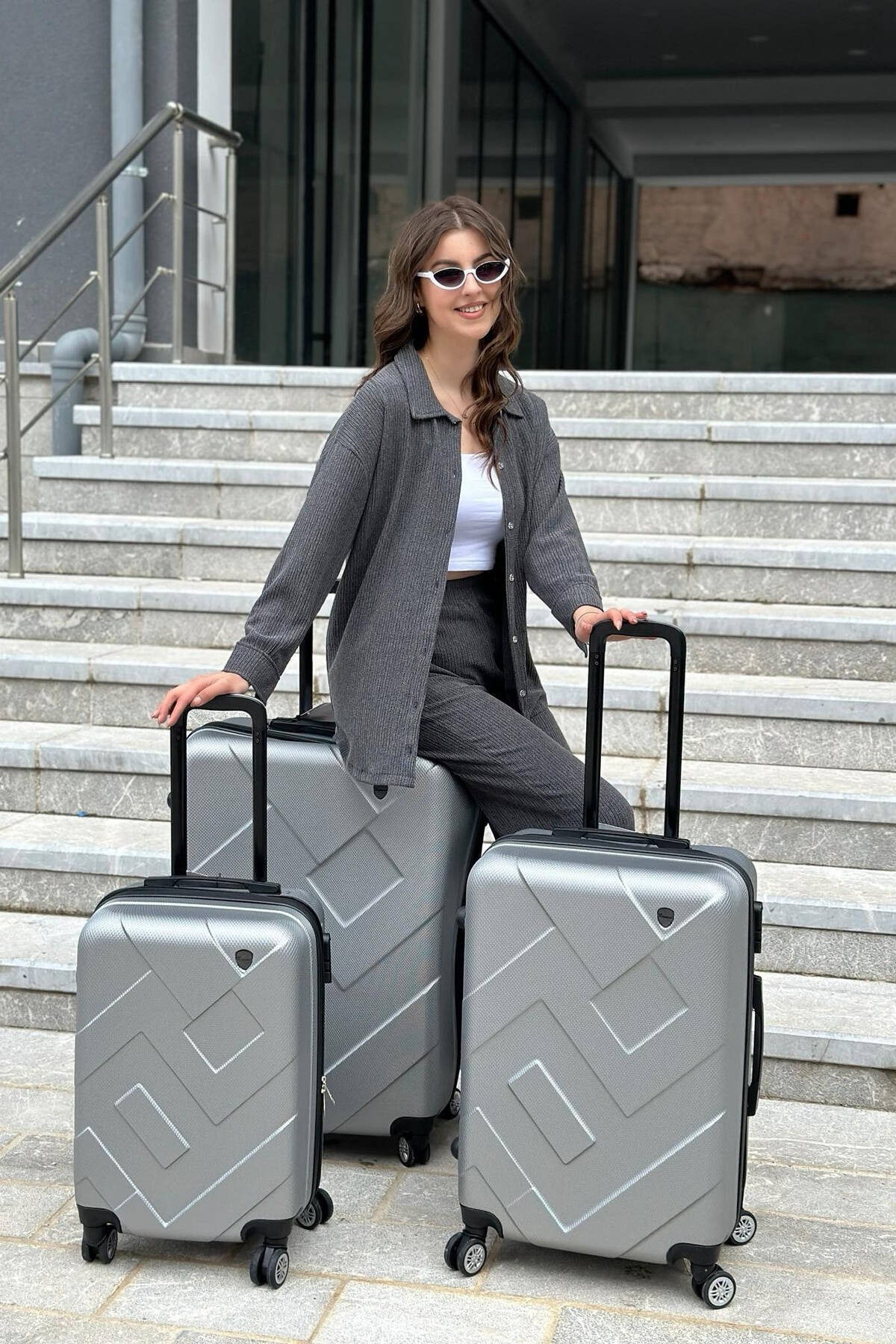 SET ME TRE VALIXHE NE NGJYRËN GRI E ZBARDHUR
