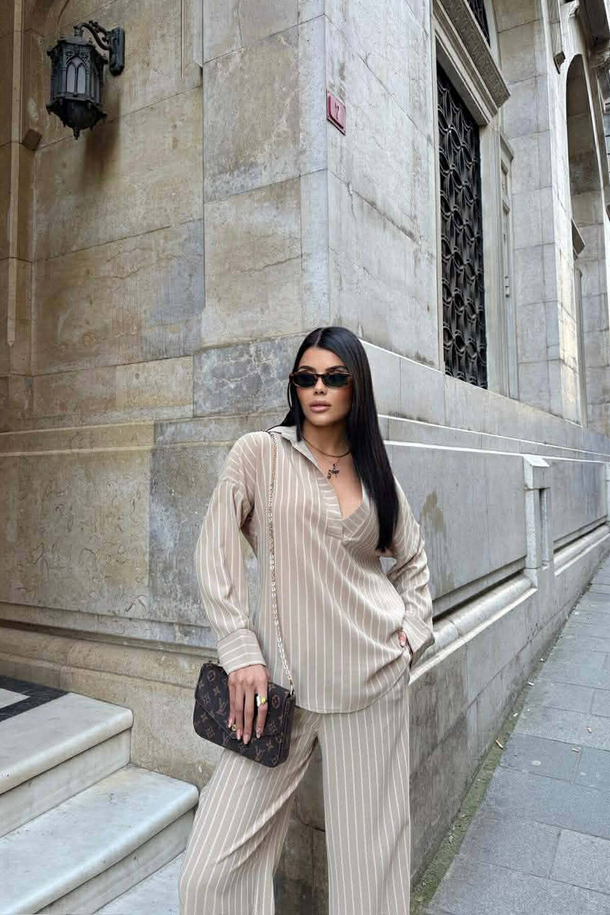 SET ME VIJA BLUZE ME JAKE V + PANTALLONA PER FEMRA NE NGJYRE BEZHE