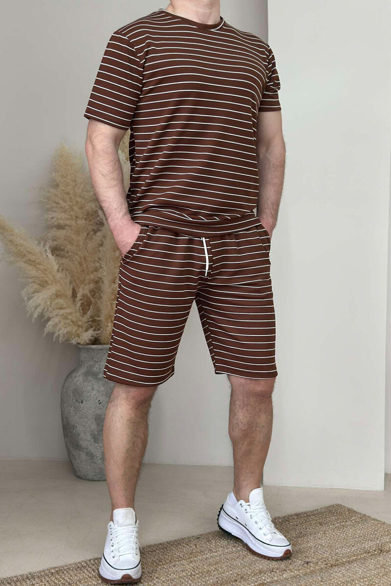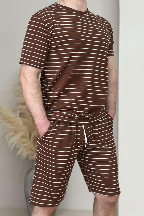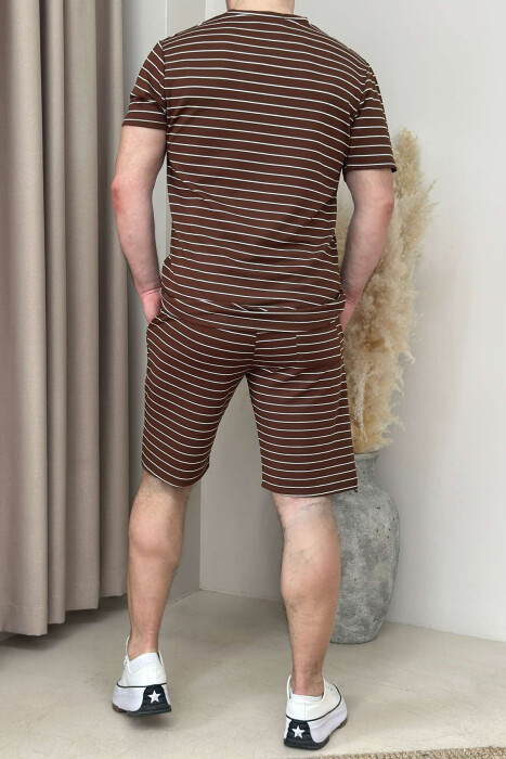 SET ME VIJA T-SHIRT+TUTA TË SHKURTRA PËR MESHKUJ NË NGJYRËN KAFE