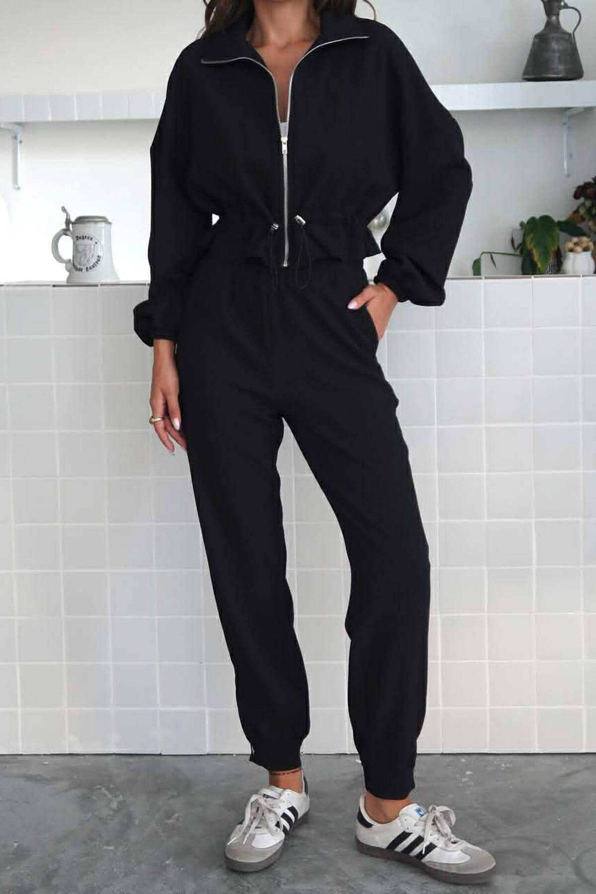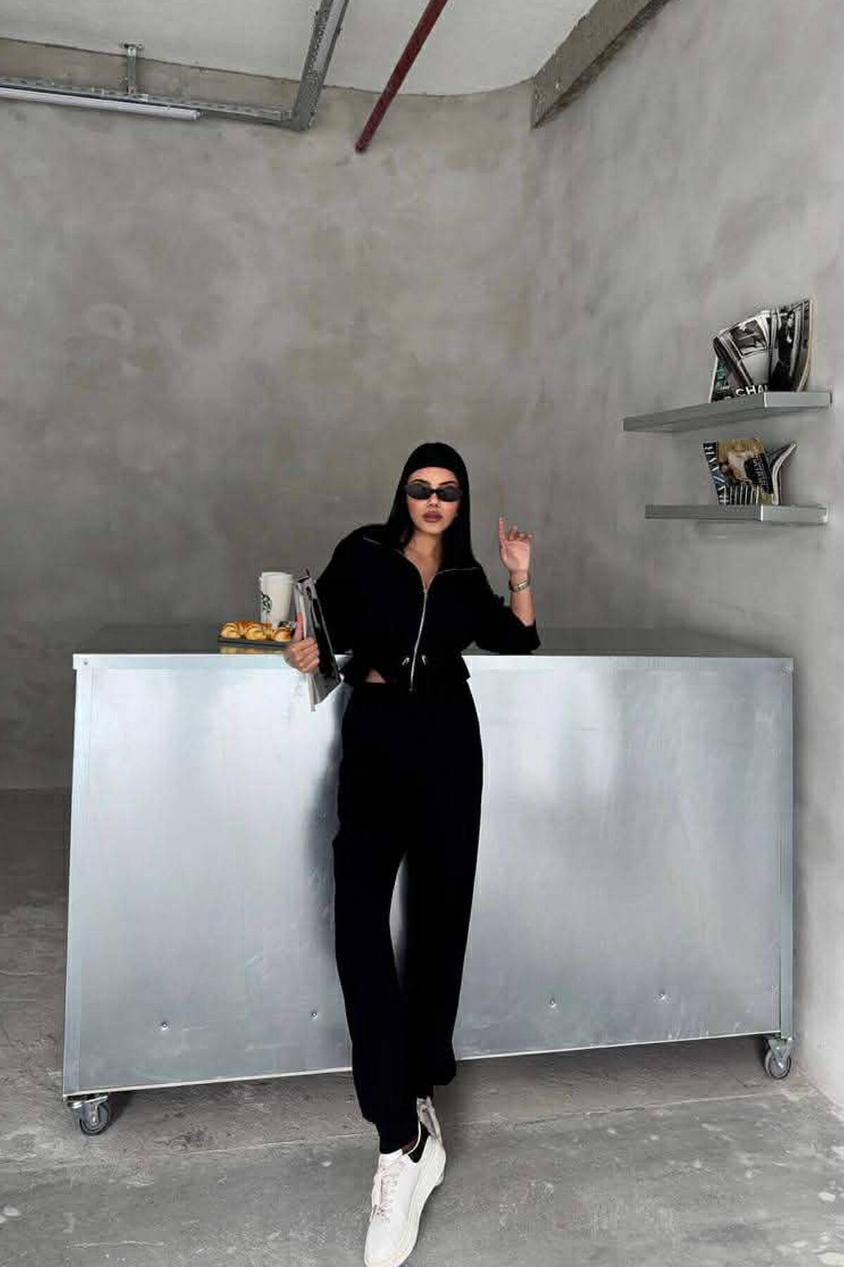 BELT DETAIL SWEATER +TROUSERS WOMAN SET BLACK/ E ZEZE
