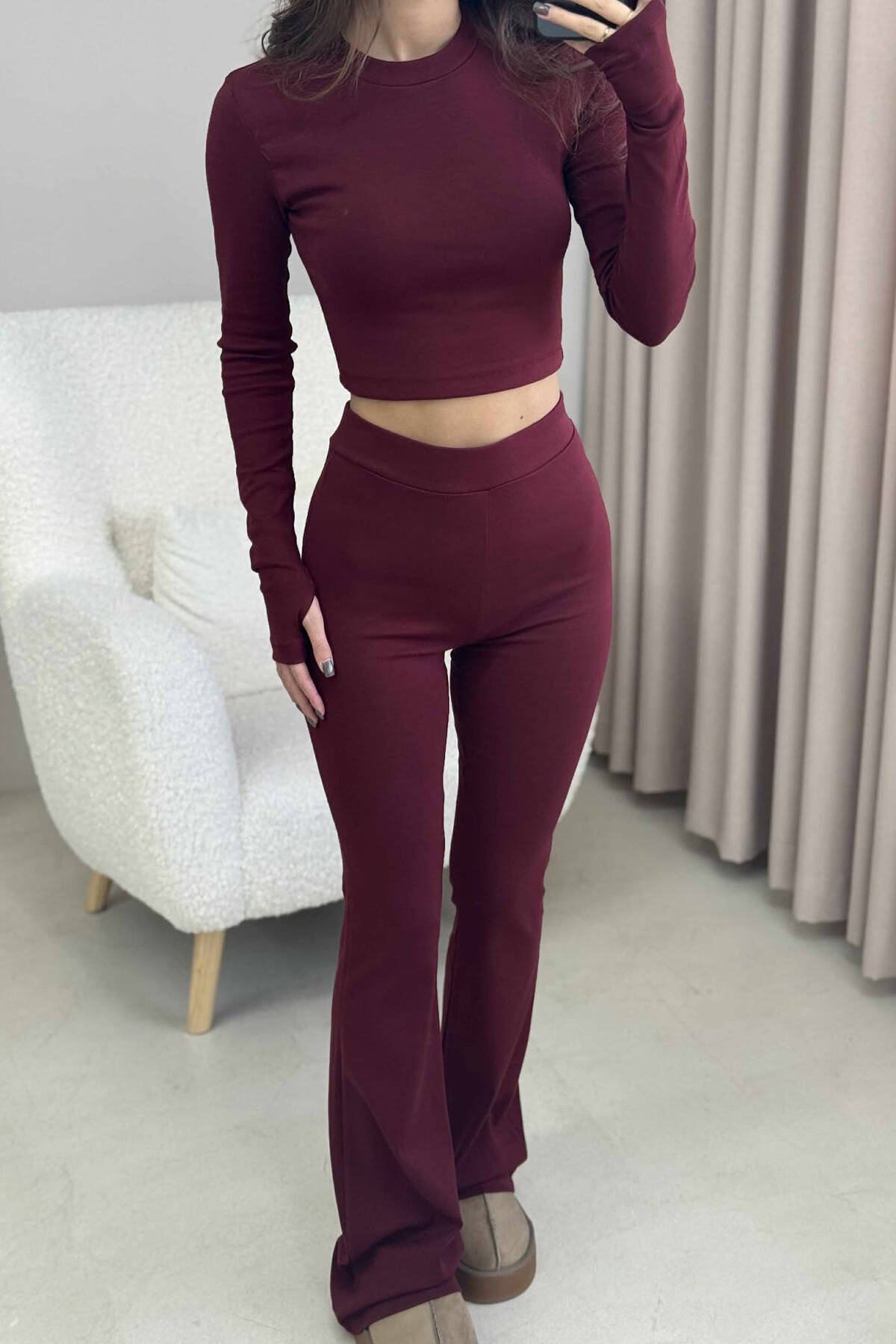 SET NJË NGJYRËSH BLUZË+PANTALLONA PËR FEMRA NË NGJYRË VISHNJË