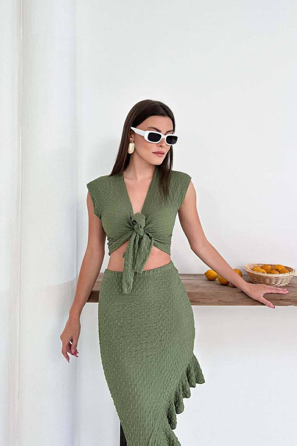 SET NJE NGJYRESH CROP TOP + FUND PER FEMRA NE NGJYRE JESHILE