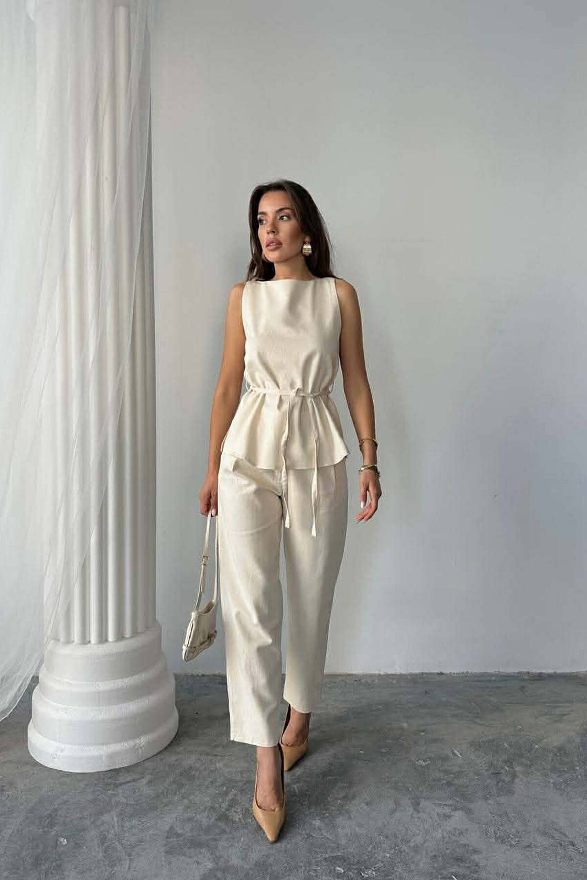 SET NJE NGJYRESH JELEK ME LIDHESE + PANTALLONA PER FEMRA NE NGJYRE KREM