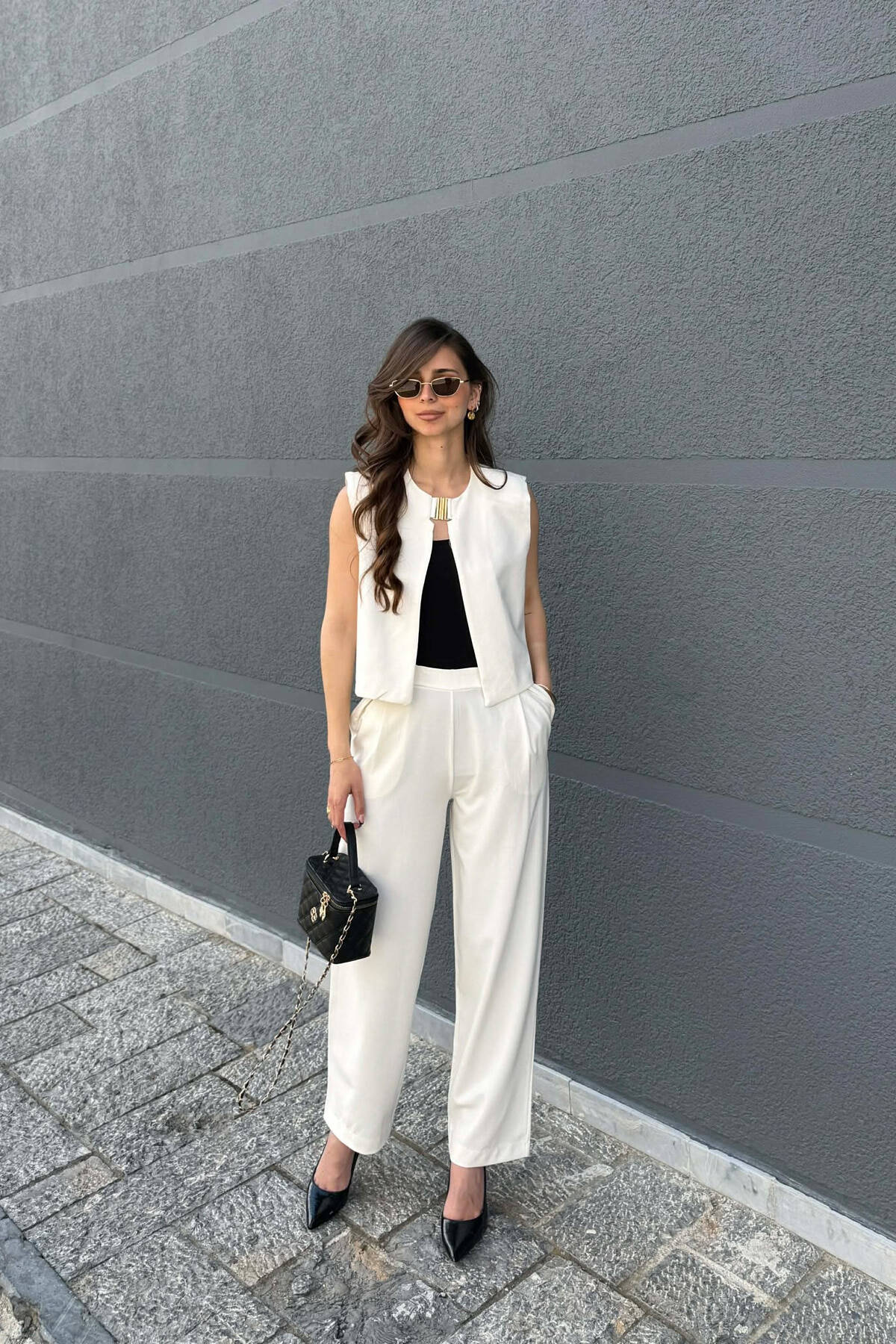SET NJE NGJYRESH JELEK +PANTALLONA PER FEMRA NE NGJYRE TE BARDHE