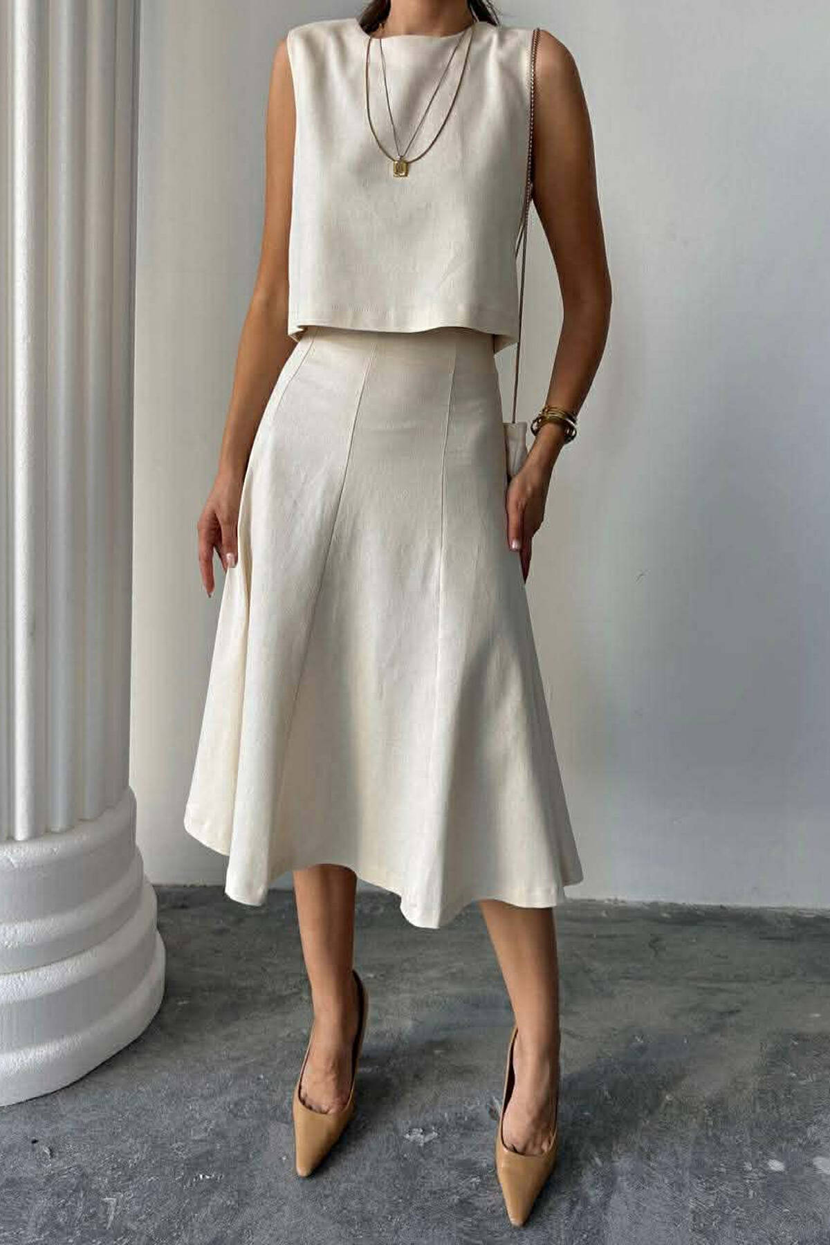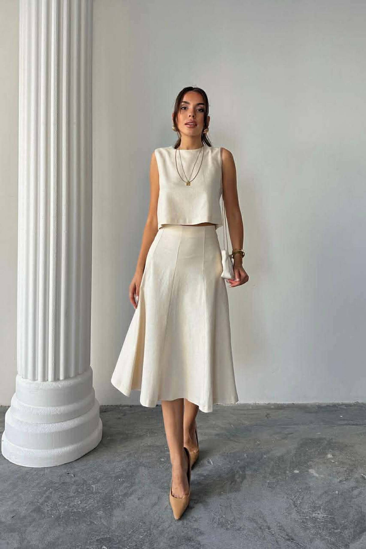 SET NJE NGJYRESH BLUZE ME ZINXHIR + TUTA PER FEMRA NE NGJYRE TE BARDHE