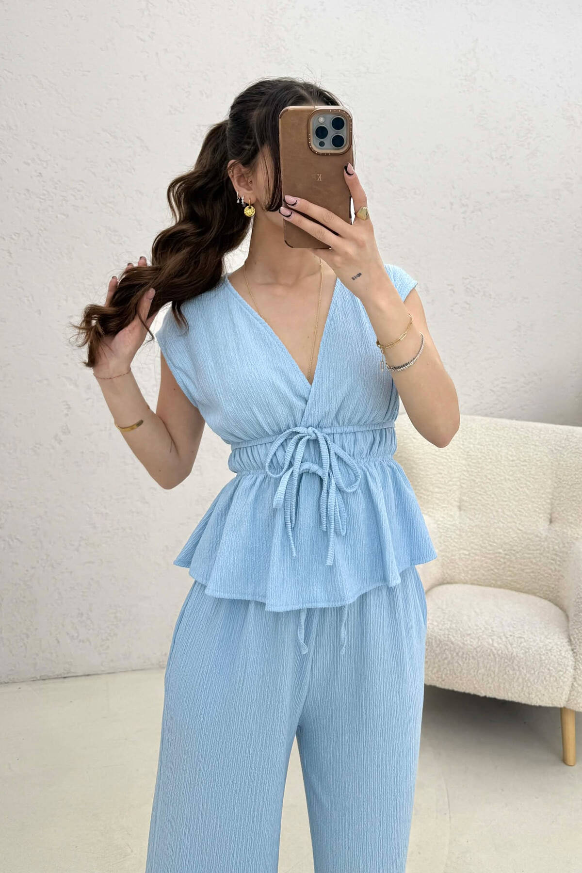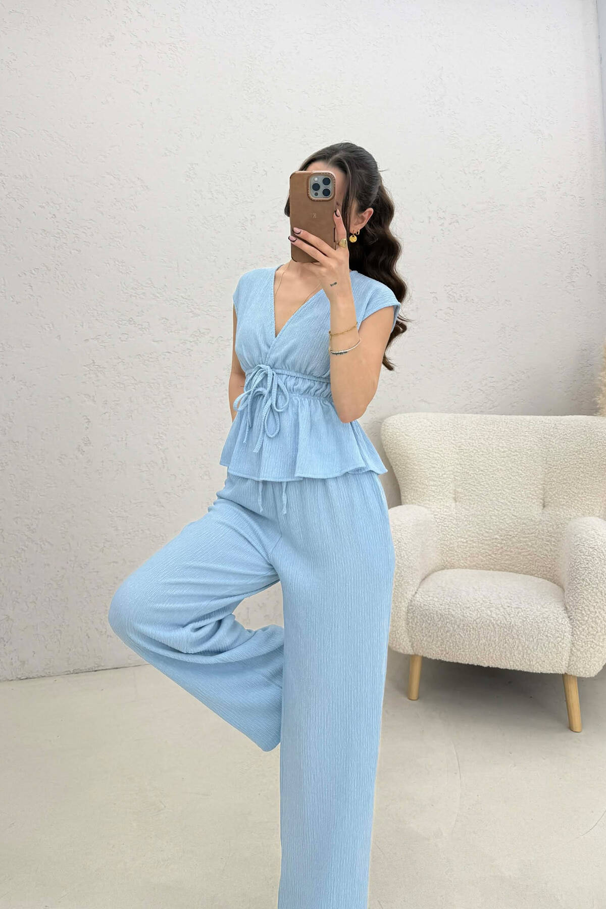 SET NJE NGJYRESH KANATJERE + PANTALLONA PER FEMRA NE NGJYRE BLU TE ZBARDHUR