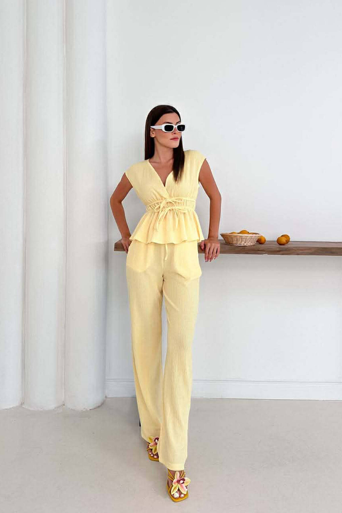 SET NJE NGJYRESH KANATJERE + PANTALLONA PER FEMRA NE NGJYRE TE VERDHE