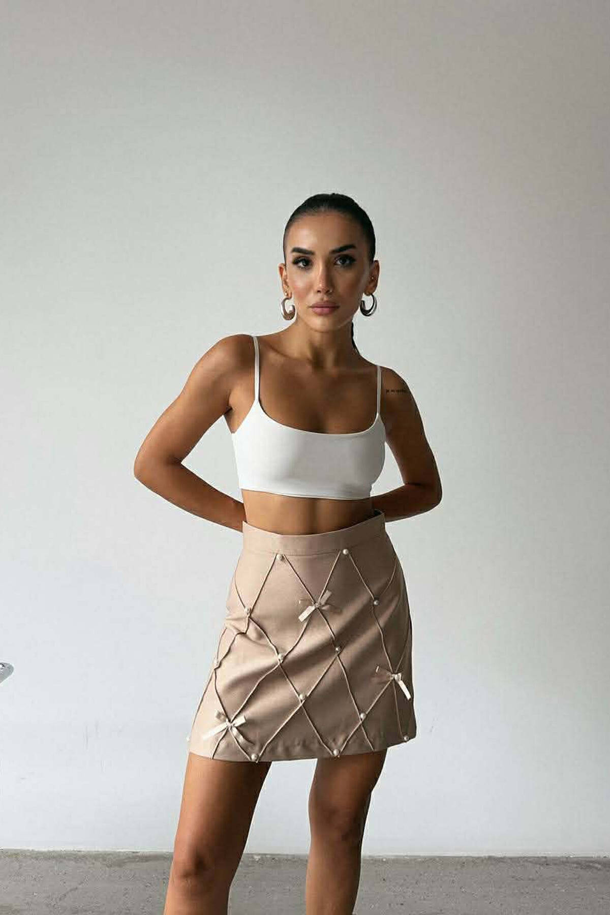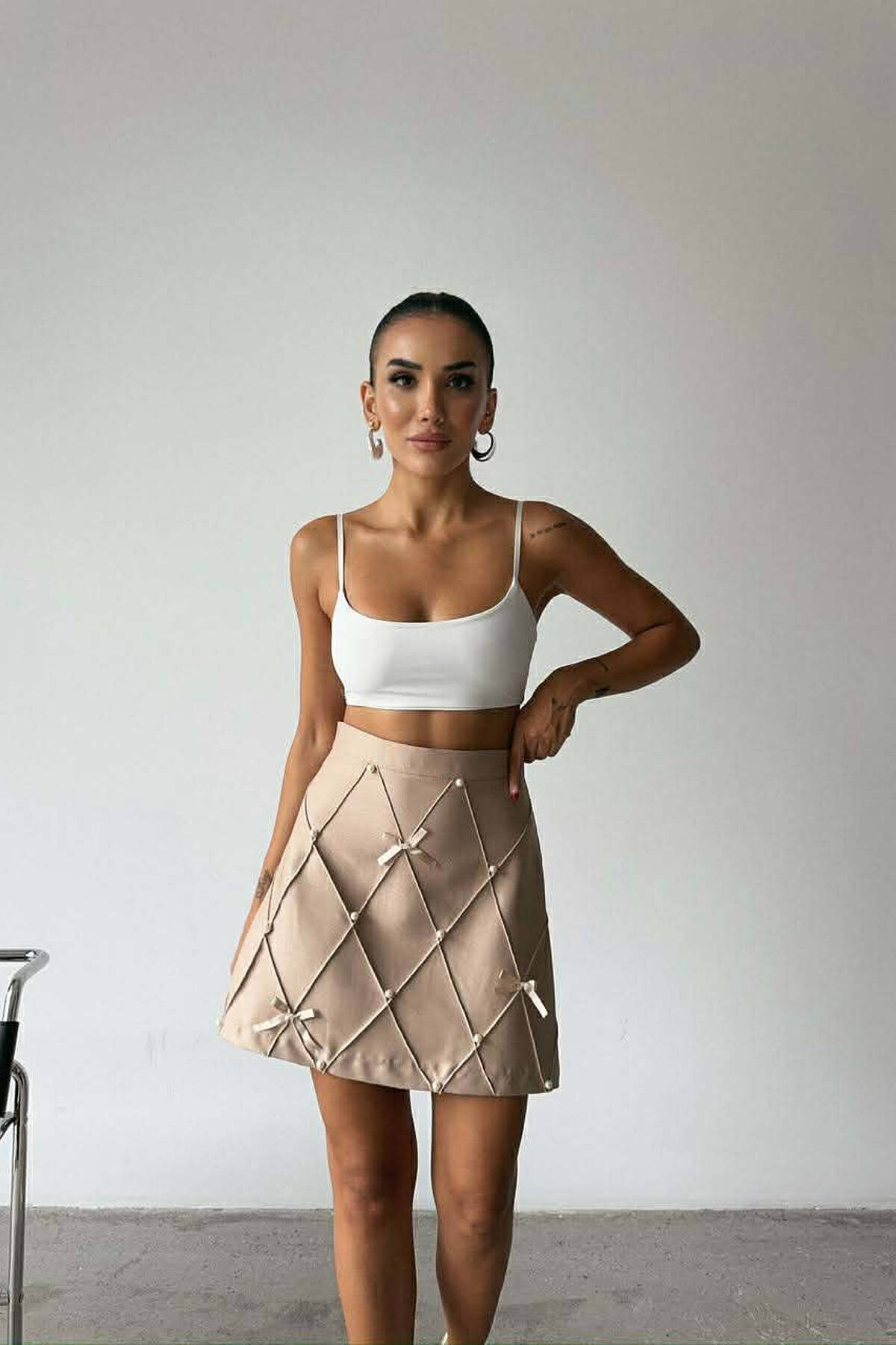 SET NJE NGJYRESH ME DETAJE PERLASH XHAKETE + FUND PER FEMRA NE NGJYRE BEZHE