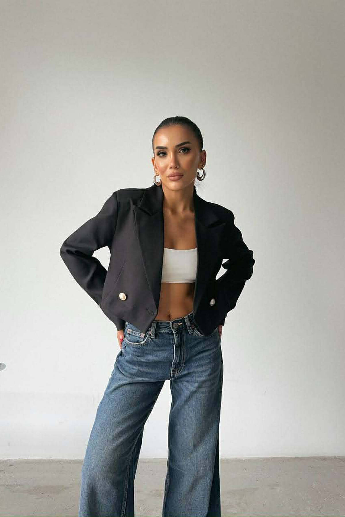 CROPPED JACKET+TANK TOP+TROUSERS 3 PIECE WOMEN SET BLACK/ E ZEZE