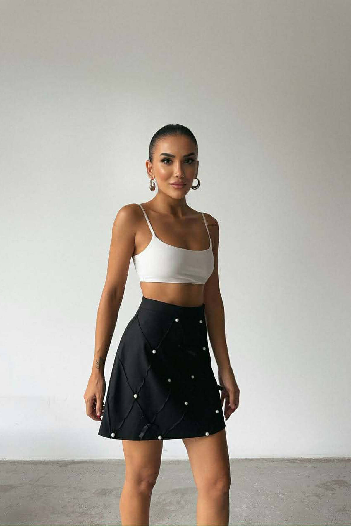ONE COLOR CROPPED JACKET+SKIRT WOMEN SET BLACK/ E ZEZE