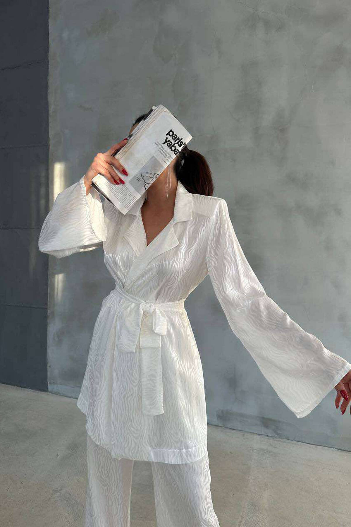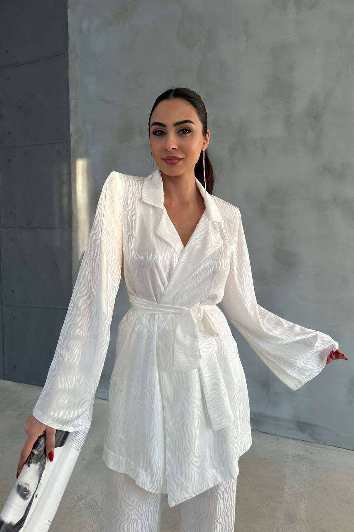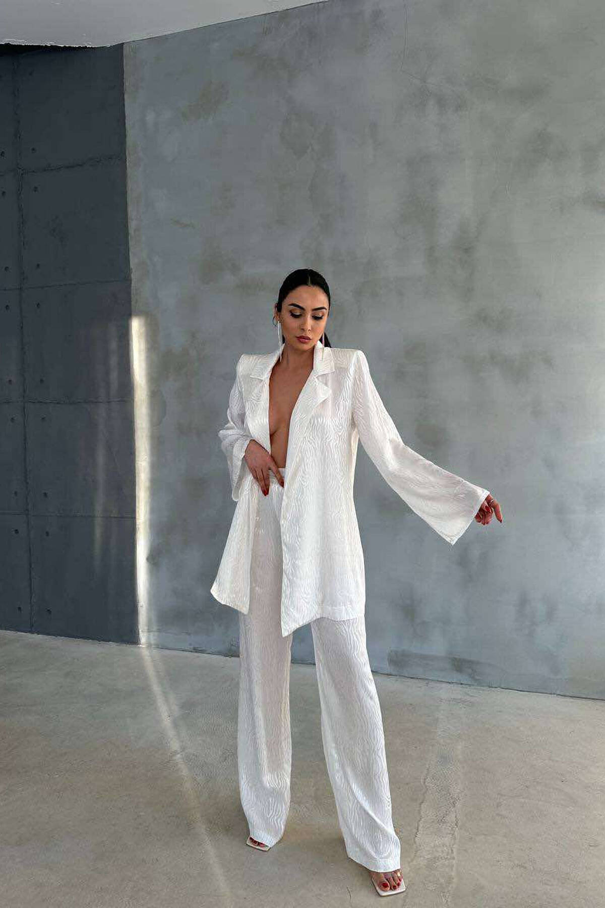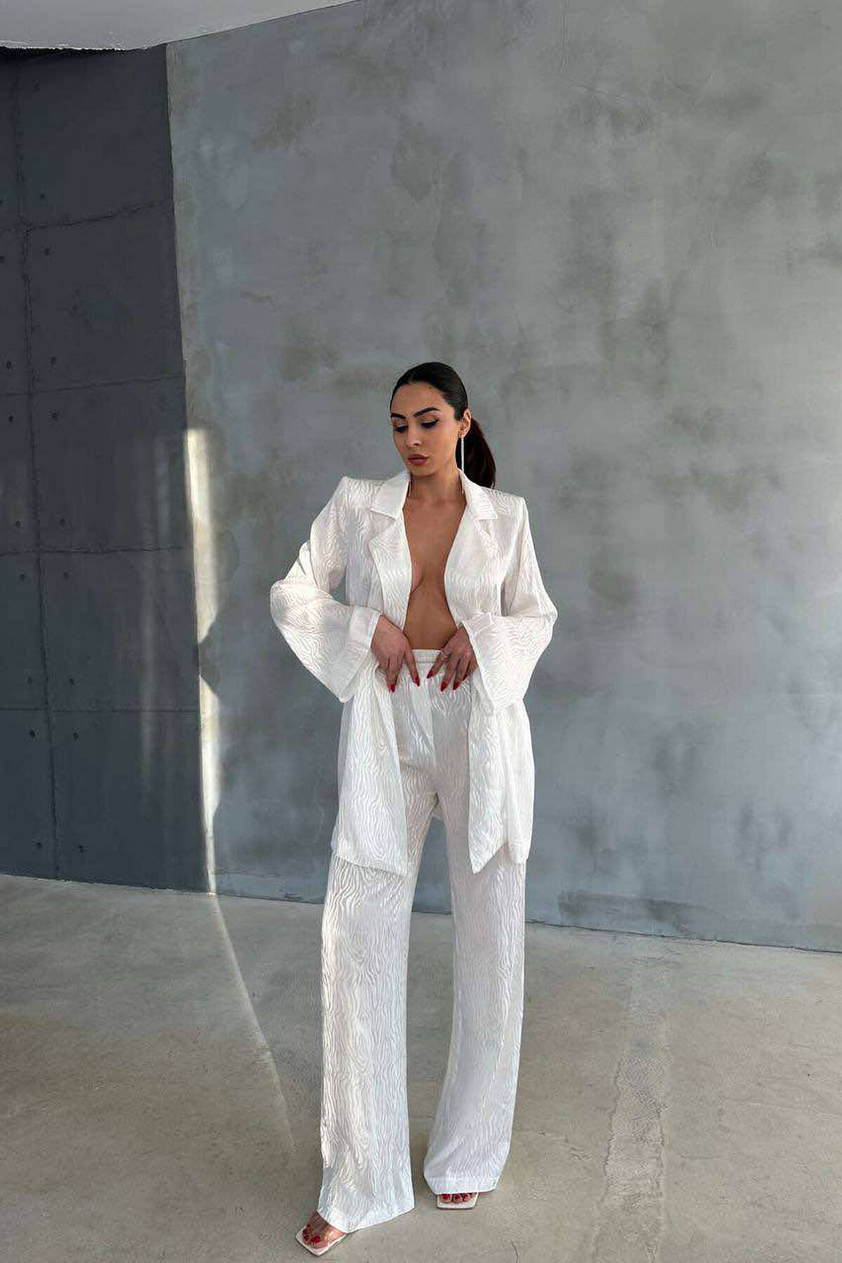 SET NJË NGJYRËSH ME DETAJIN E LIDHSEVE XHAKETË+PANTALLONA PËR FEMRA NË NGJYRËN E BARDHË