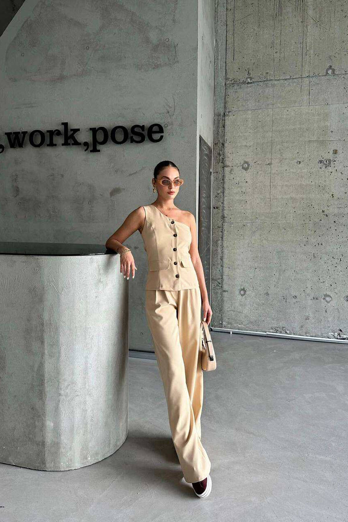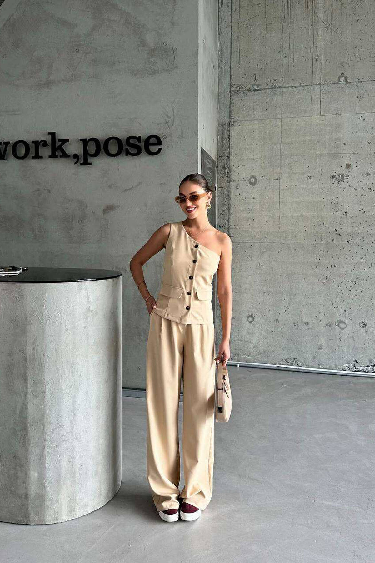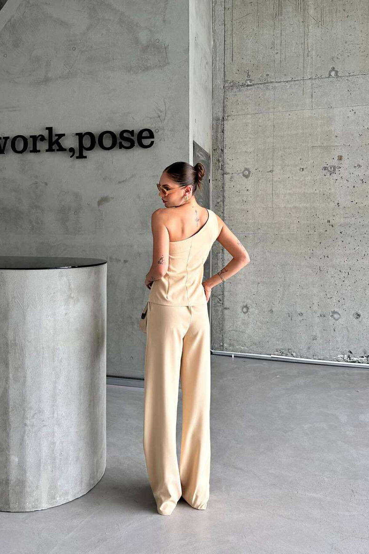 SET JELEK ME NJË MËNGË+PANTALLONA PËR FEMRA NË NGJYRË BEZHË