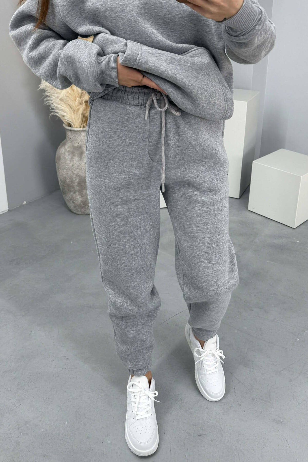SET NJE NGJYRESH ME PUSH HOODIE+TUTA PER FEMRA NE NGJYRE GRI TE ZBARDHUR