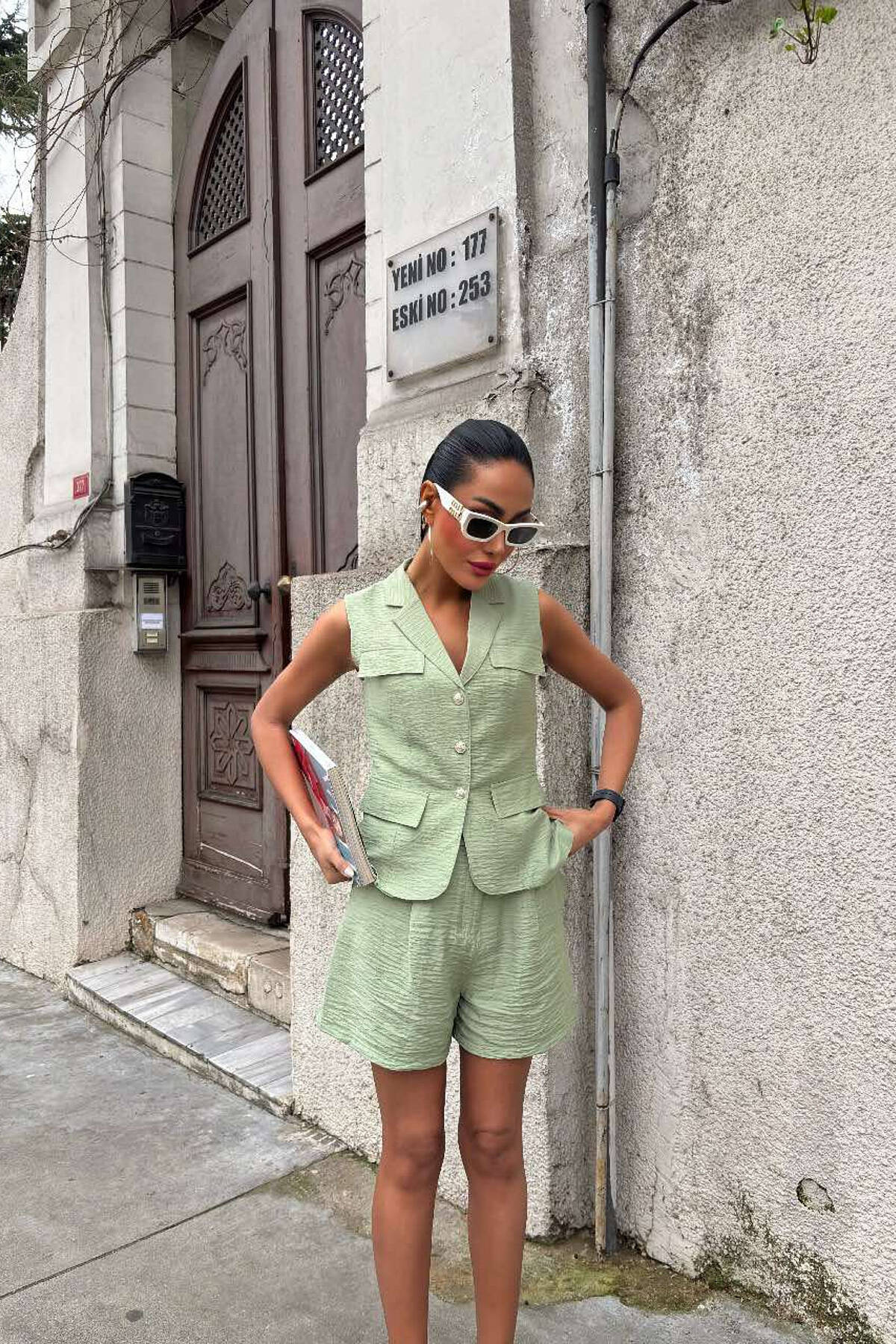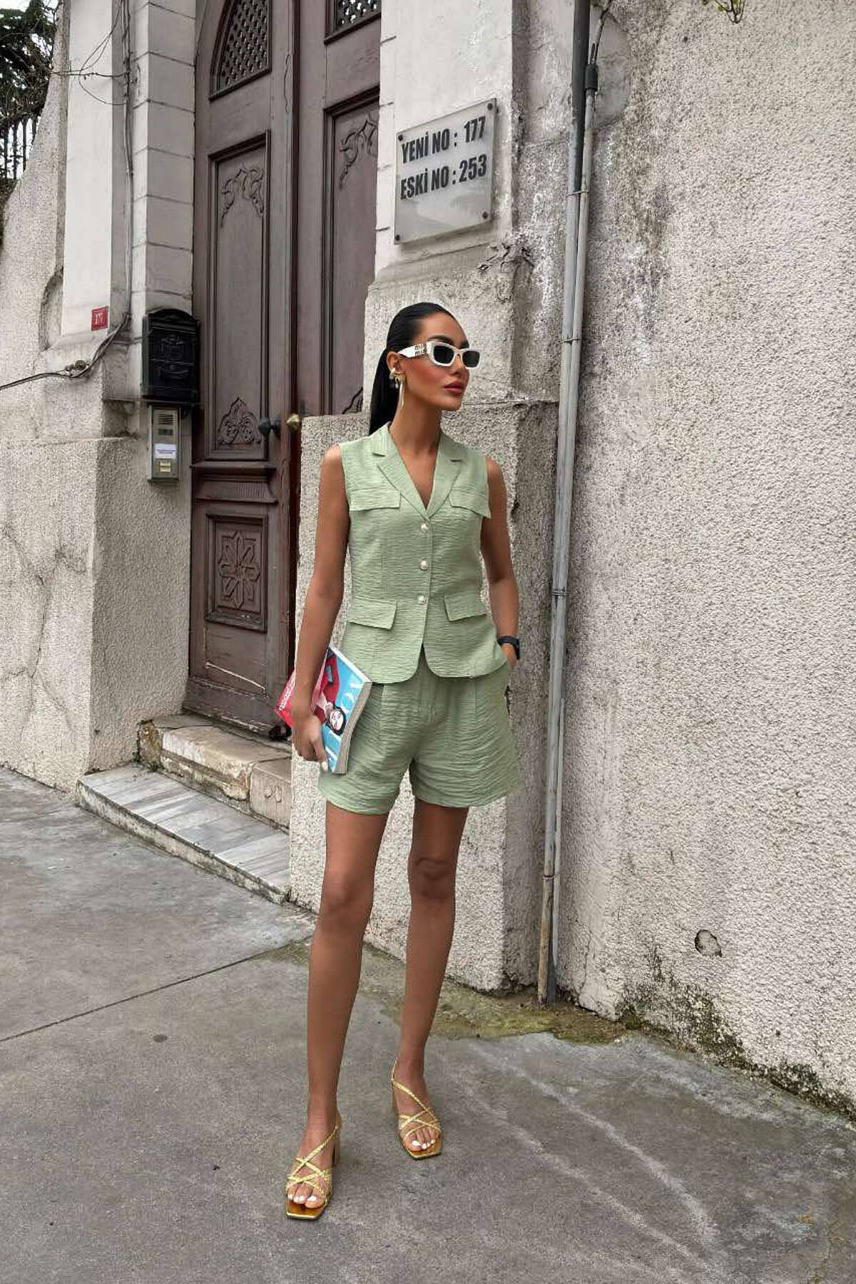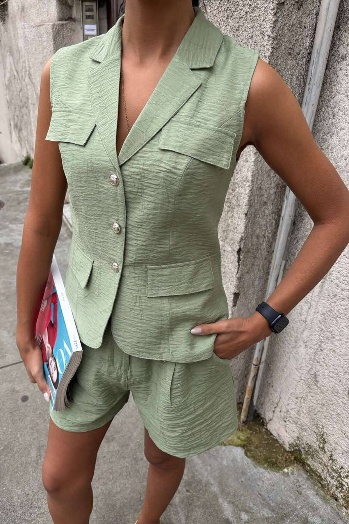 SET NJË NGJYRËSH JELEK+PANTALLONA TË SHKURTRA PËR FEMRA NË NGJYRË MENTE