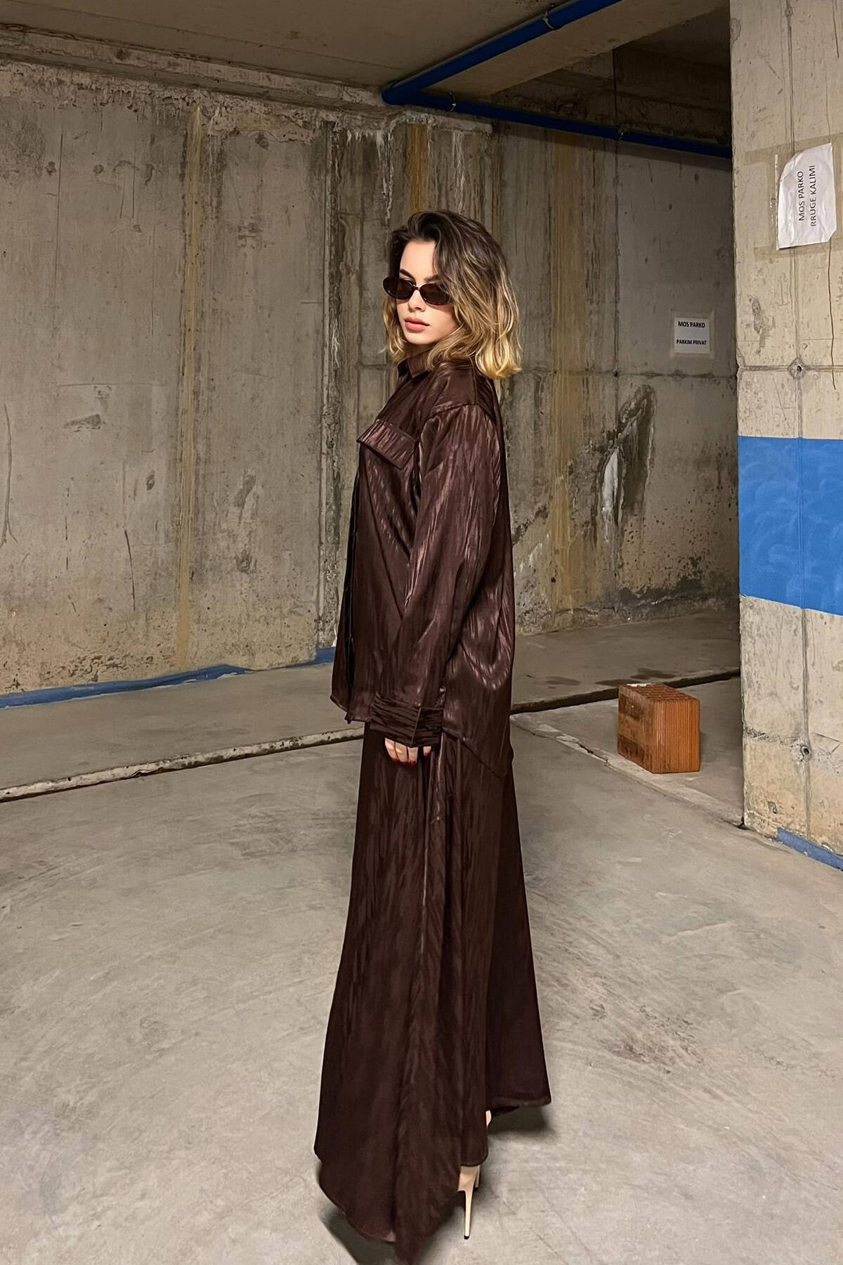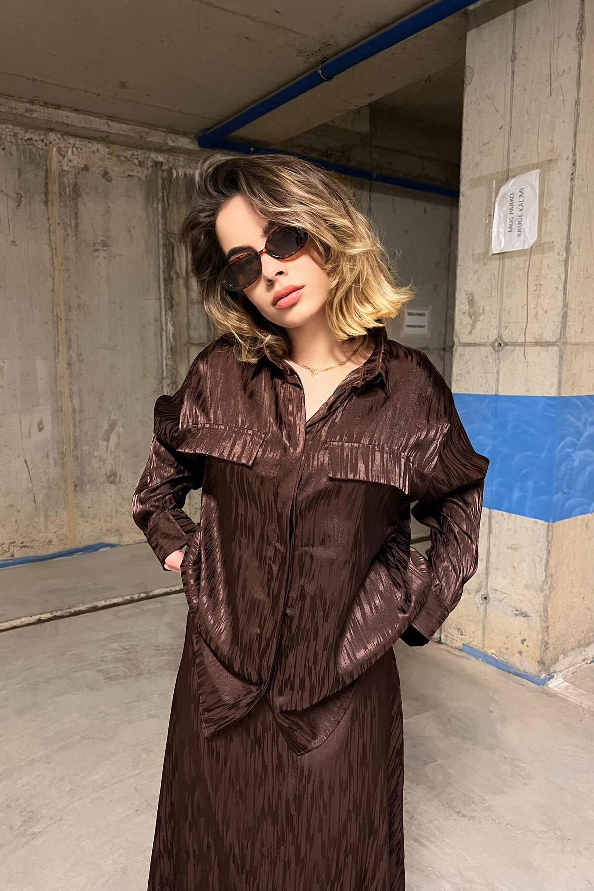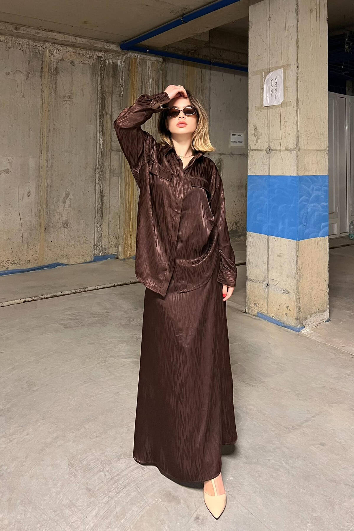 SET NJË NGJYRËSH KËMISHË+FUND PËR FEMRA NË NGJYRË KAFE TË ERRËT