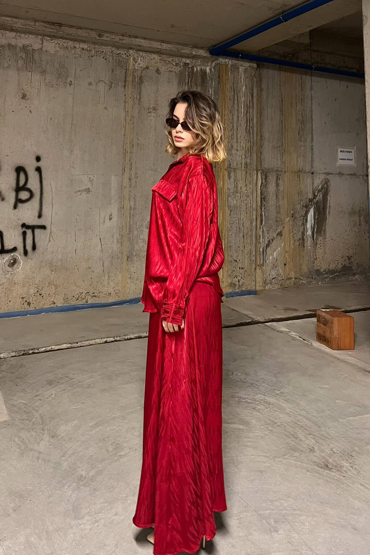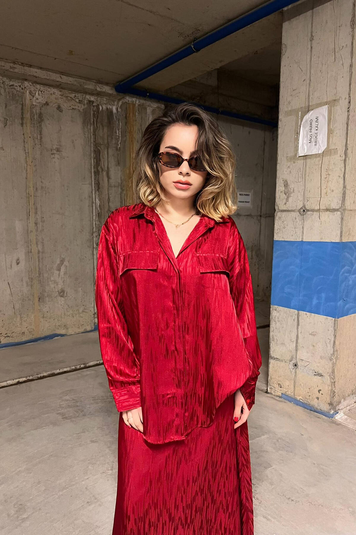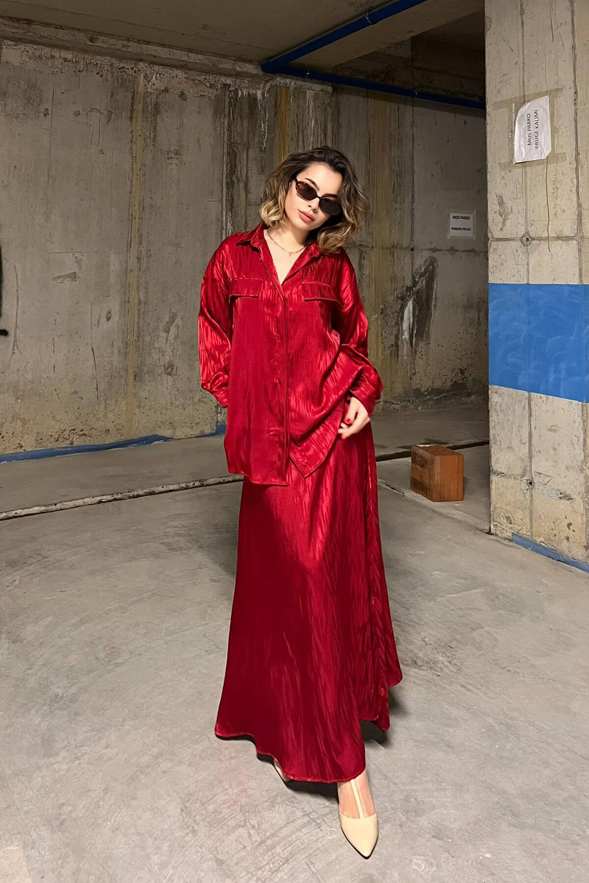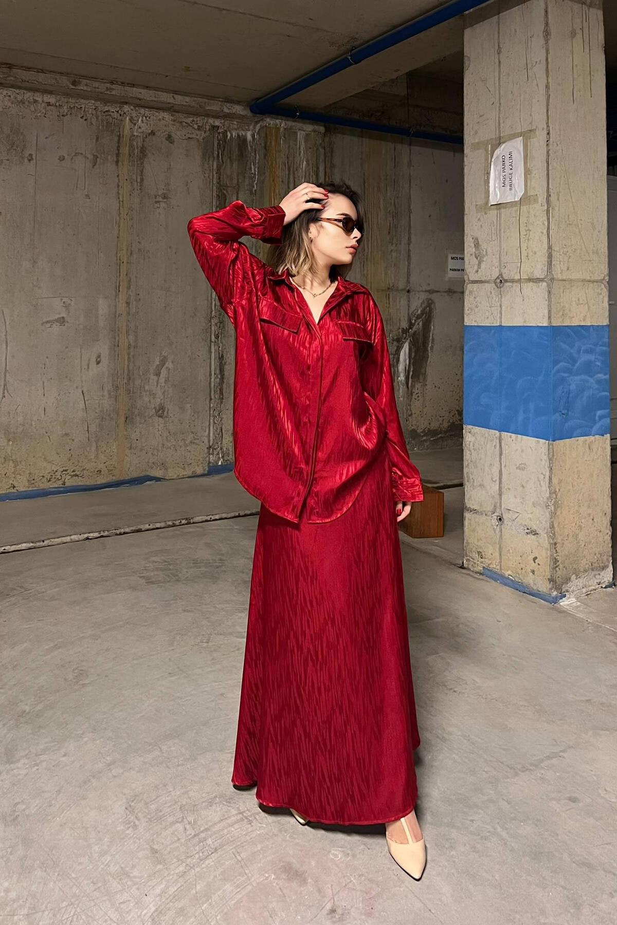SET NJË NGJYRËSH KËMISHË+FUND PËR FEMRA NË NGJYRË VISHNJË